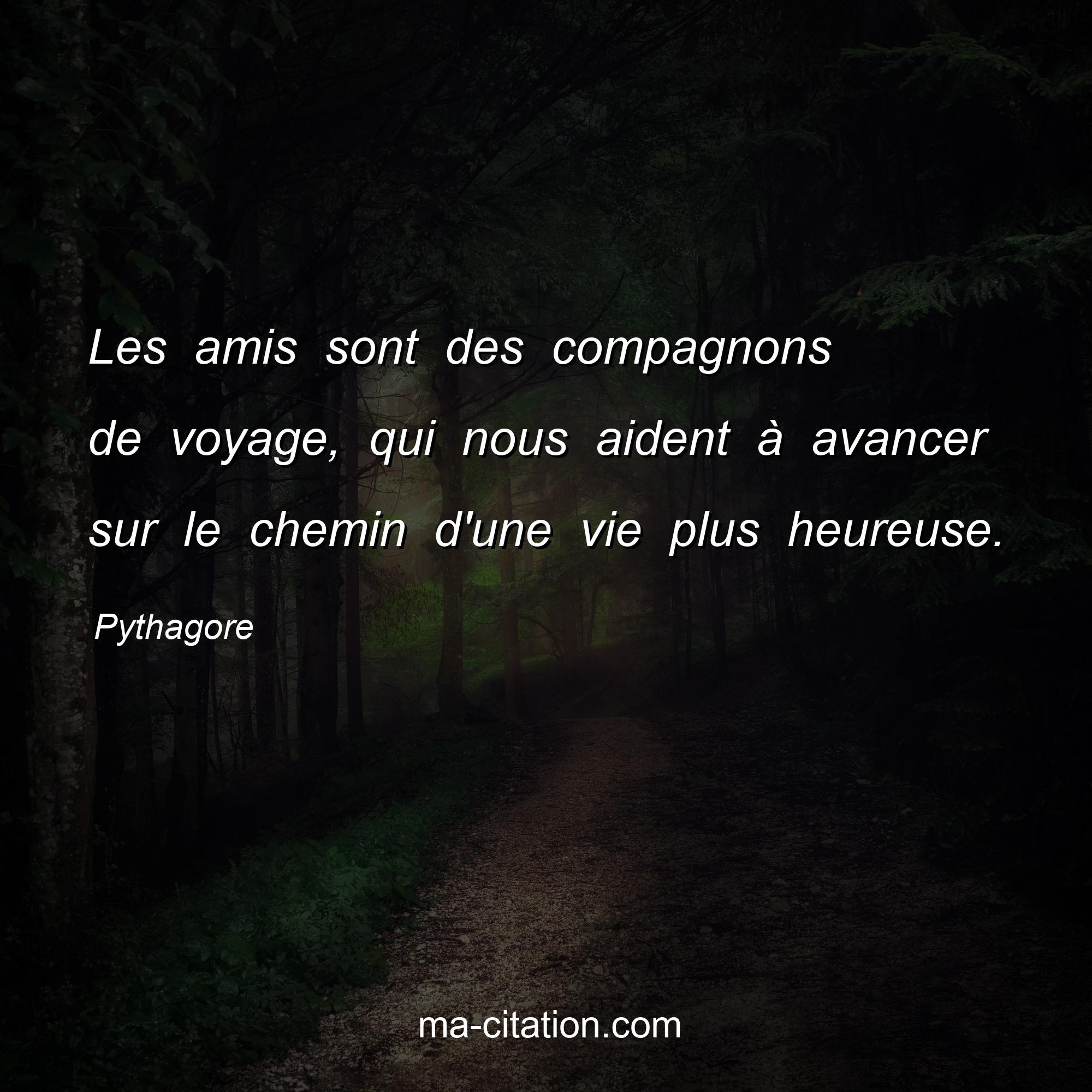 Citation sur l'amitié de Pythagore :Les amis sont des compagnons de voyage, qui nous aident à avancer sur le chemin d'une vie plus heureuse.