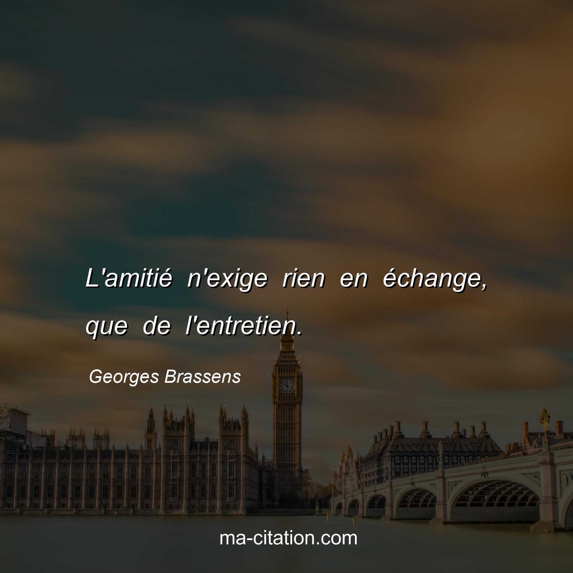 Citation sur l'amitié de Georges Brassens :L'amitié n'exige rien en échange, que de l'entretien.