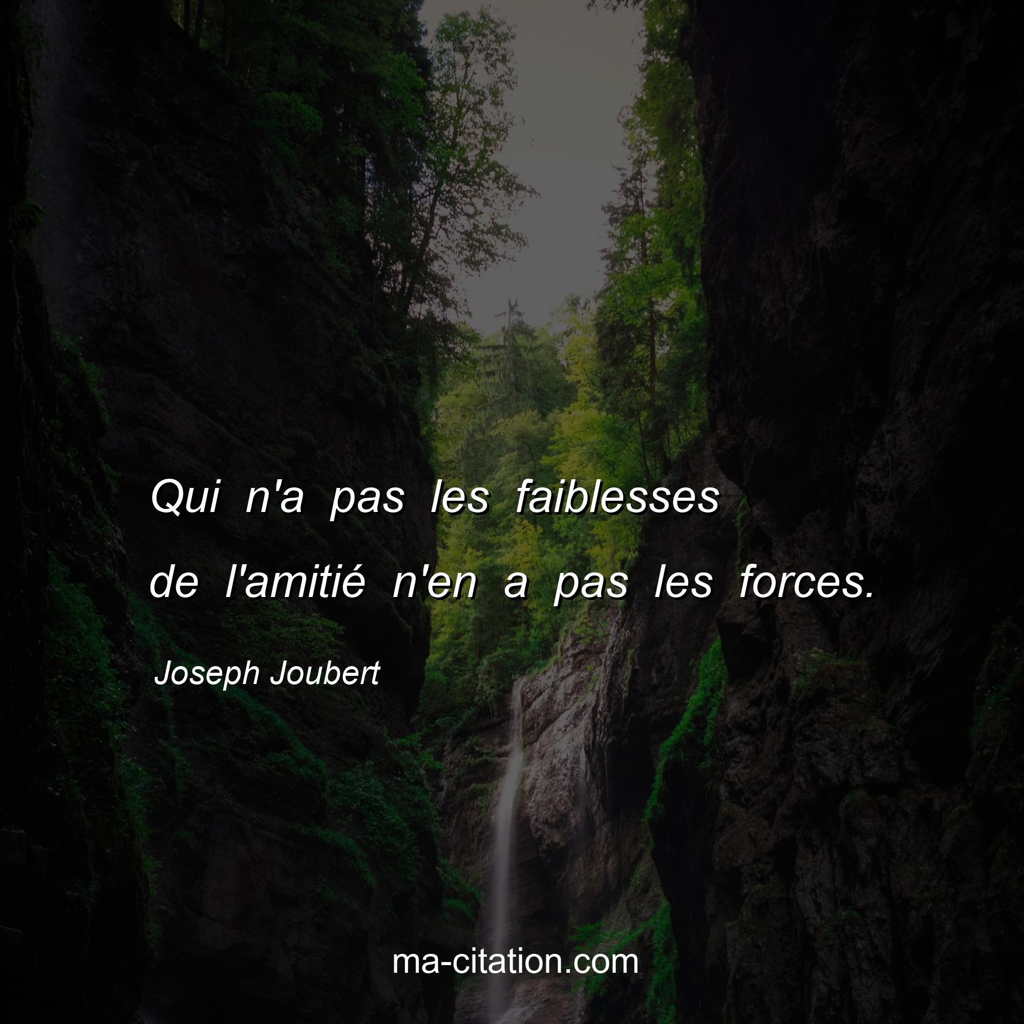 Citation sur l'amitié de Joseph Joubert :Qui n'a pas les faiblesses de l'amitié n'en a pas les forces.