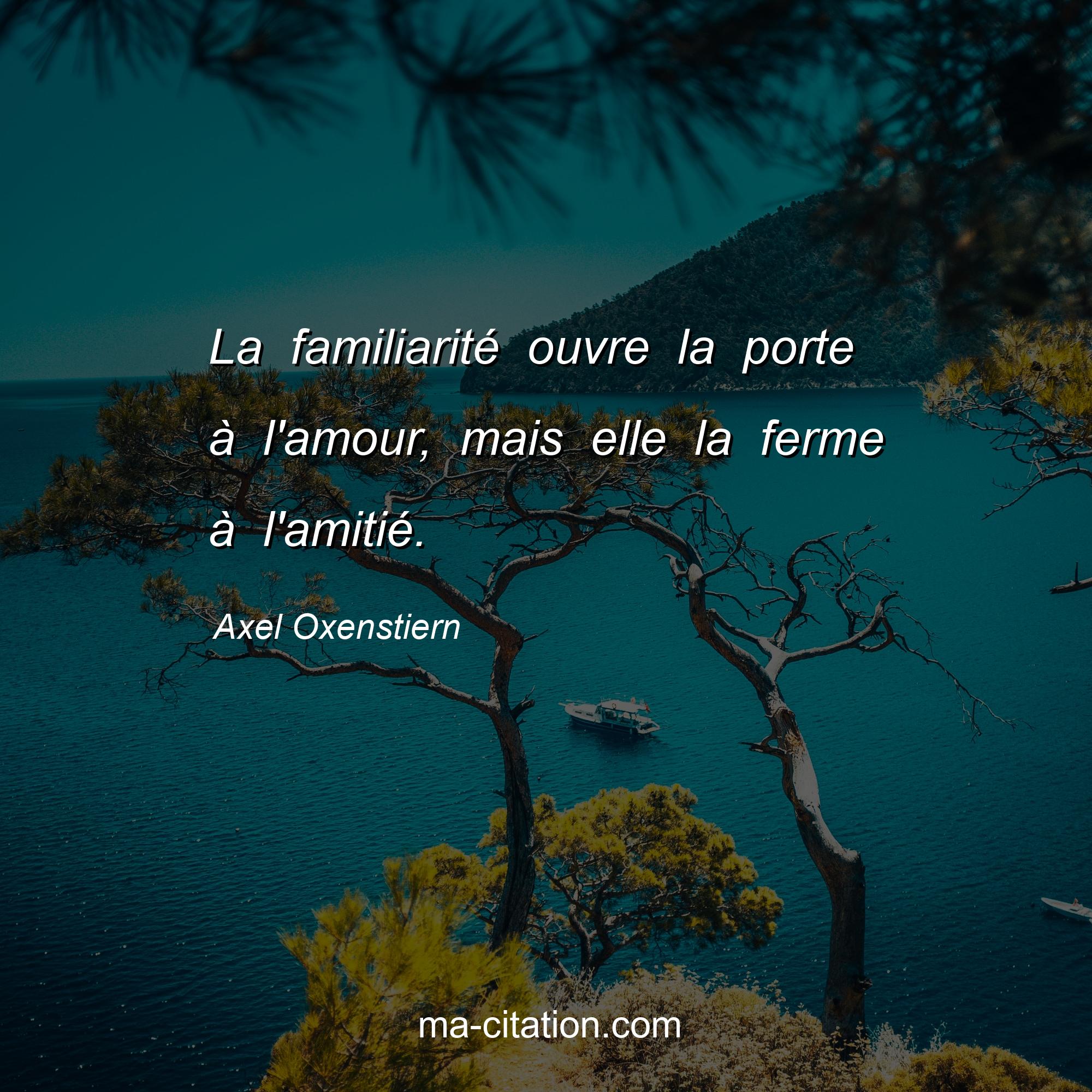 Citation sur l'amitié d'Axel Oxenstiern :La familiarité ouvre la porte à l'amour, mais elle la ferme à l'amitié.