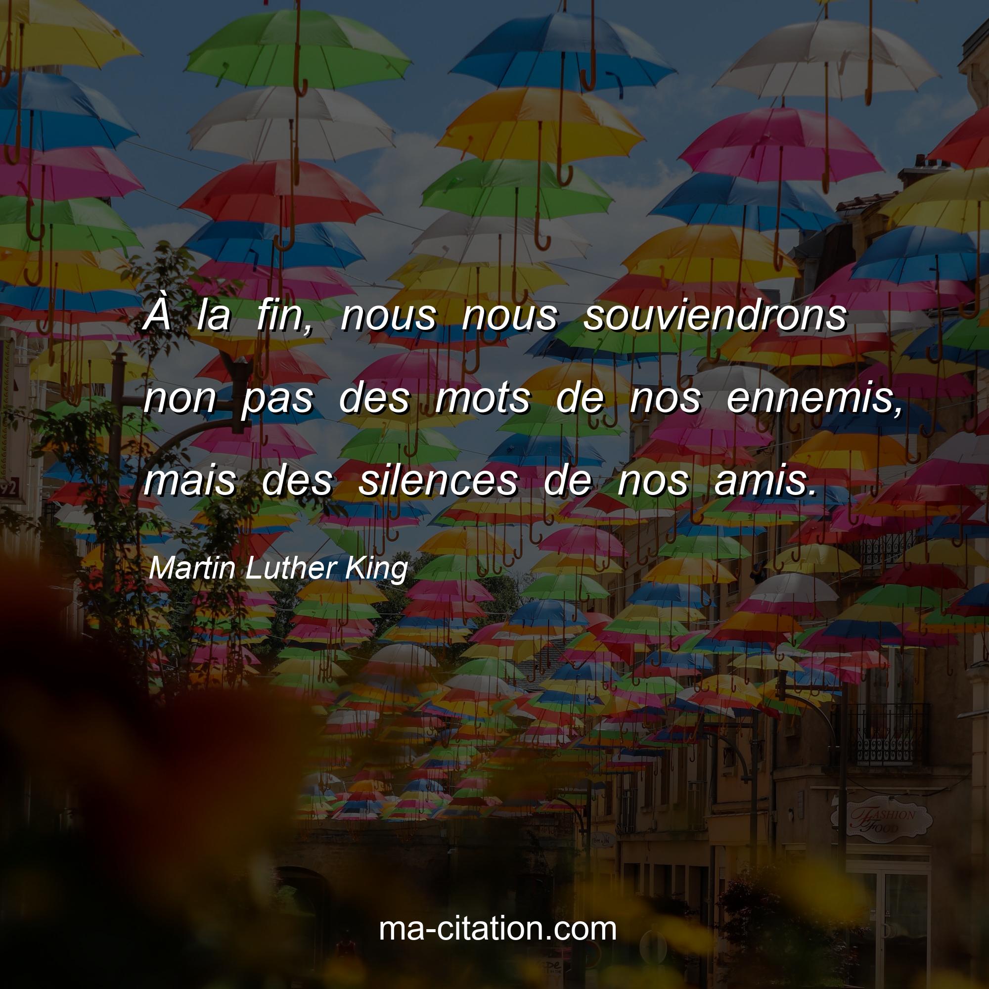 À la fin, nous nous souviendrons non pas des mots de nos ennemis, mais des silences de nos amis.