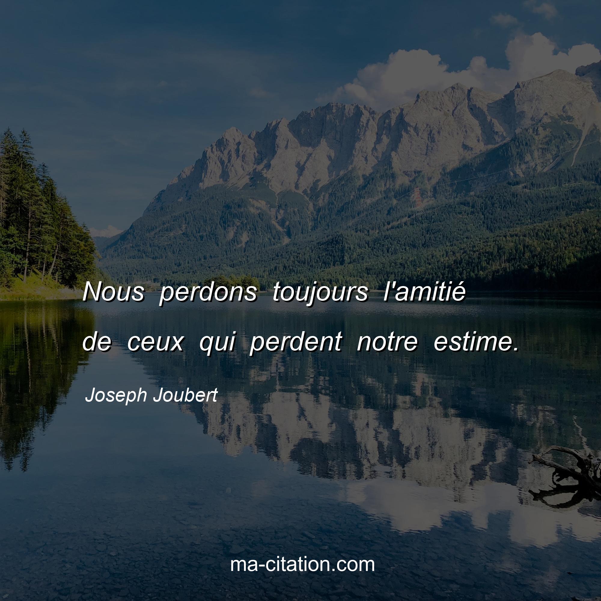 Joseph Joubert est l'auteur de la citation sur l'amitié "Nous perdons toujours l'amitié de ceux qui perdent notre estime.".