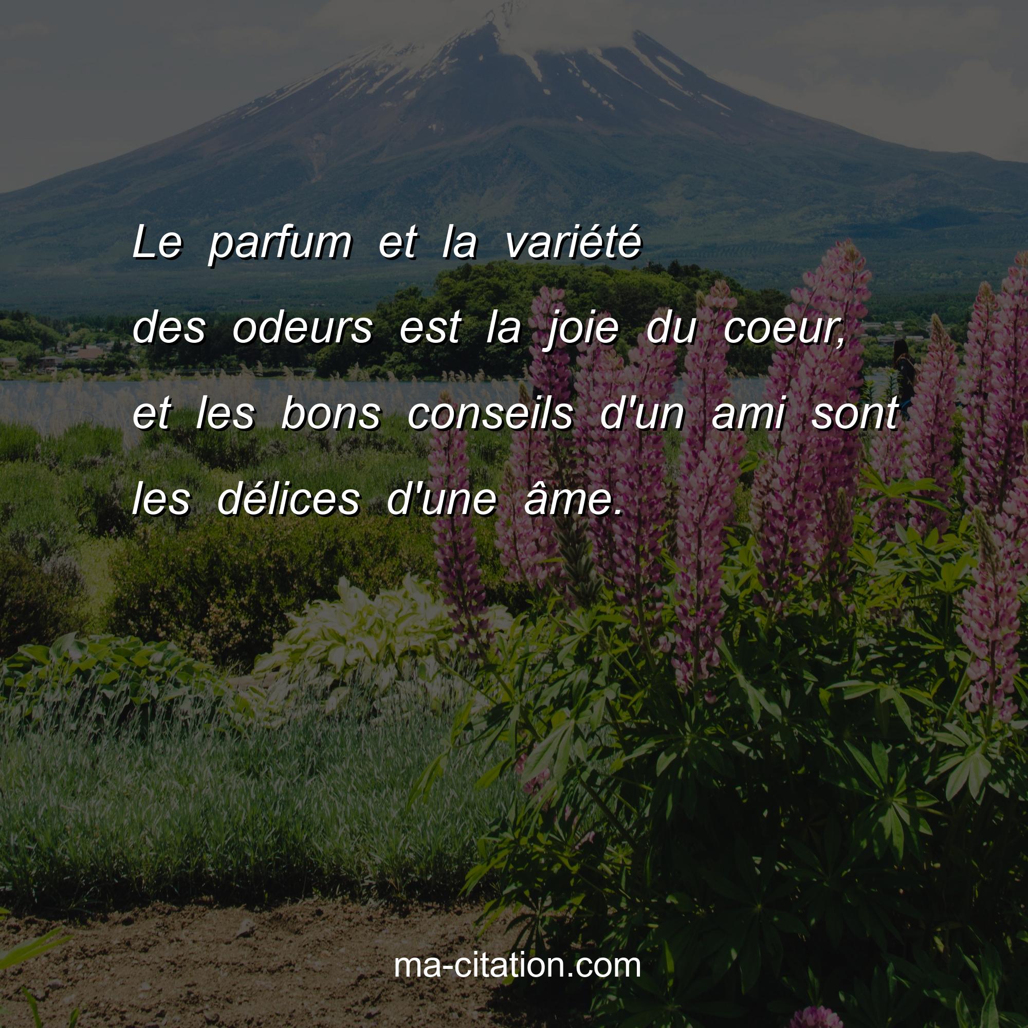 Le parfum et la variété des odeurs est la joie du coeur, et les bons conseils d'un ami sont les délices d'une âme.