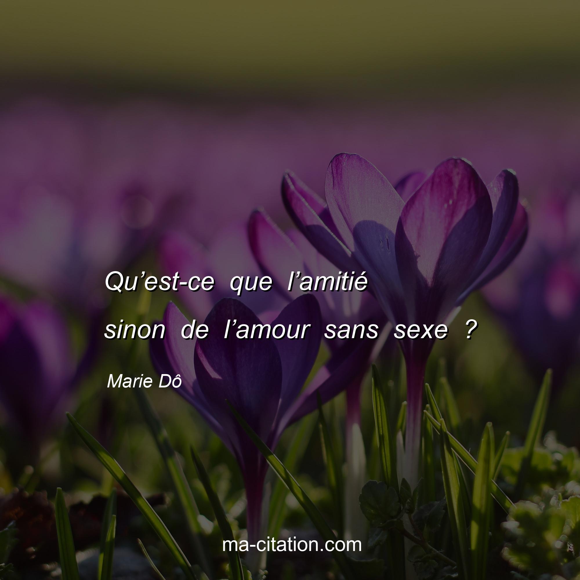 Marie Dô est l'auteur de la citation sur l'amitié "Qu’est-ce que l’amitié sinon de l’amour sans sexe ?".