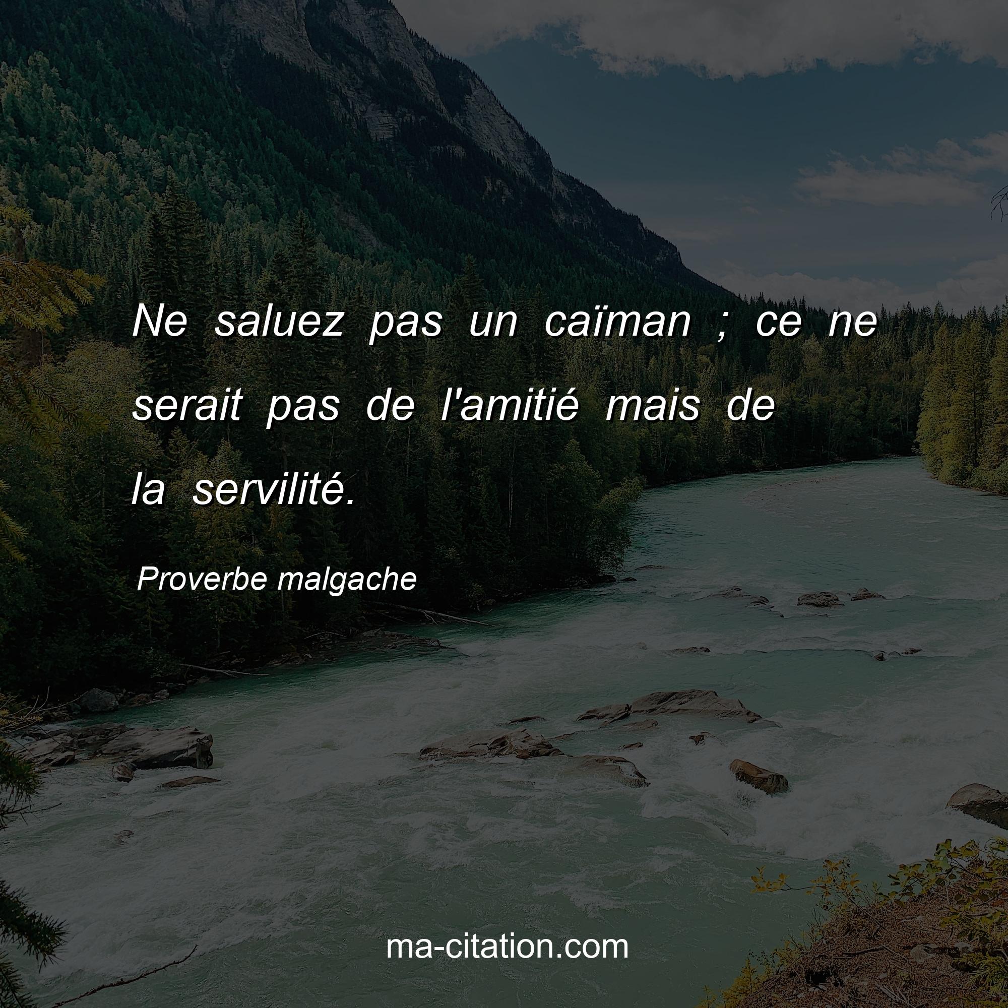 Proverbe malgache : Ne saluez pas un caïman ; ce ne serait pas de l'amitié mais de la servilité.