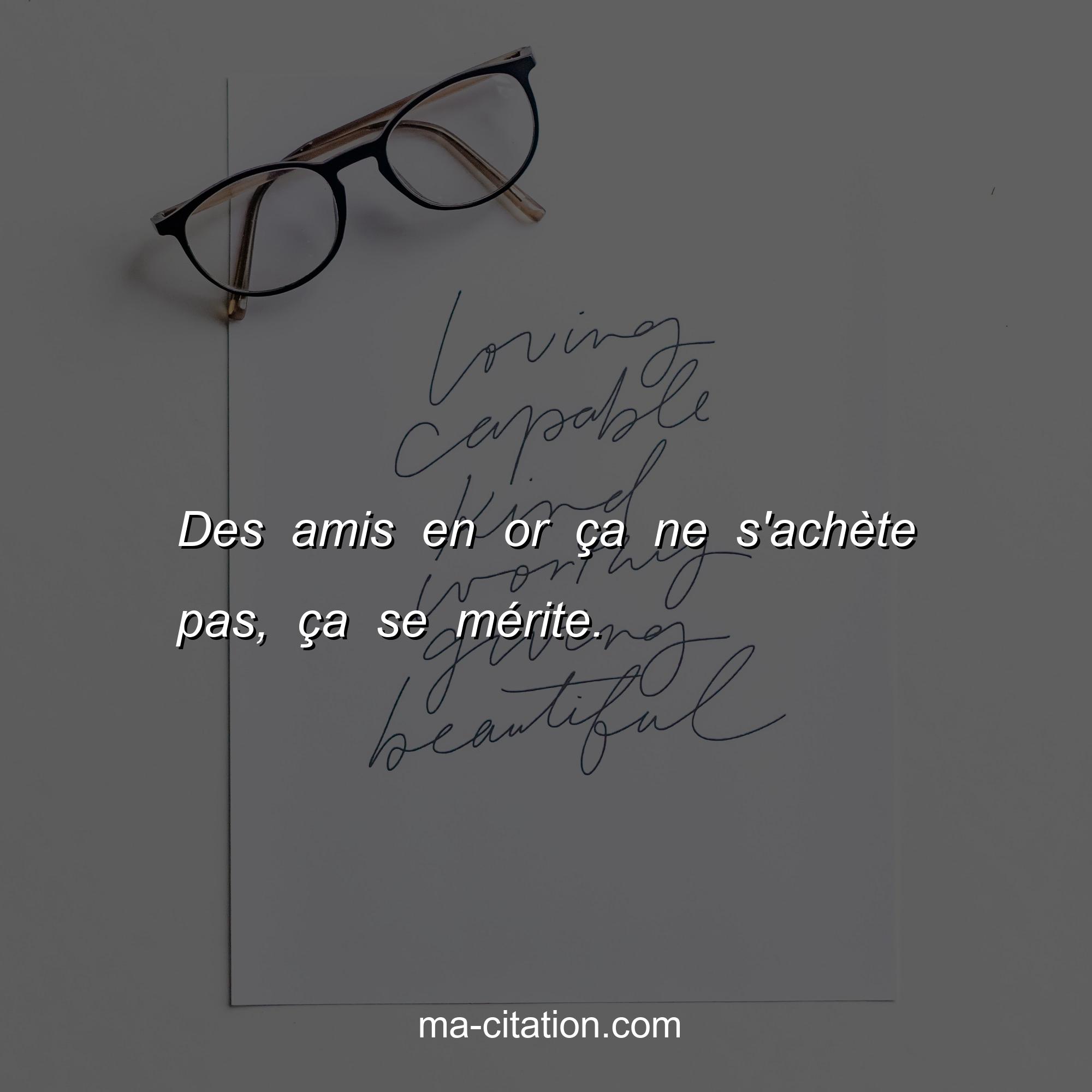 Citation sur l'amitié :Des amis en or ça ne s'achète pas, ça se mérite.
