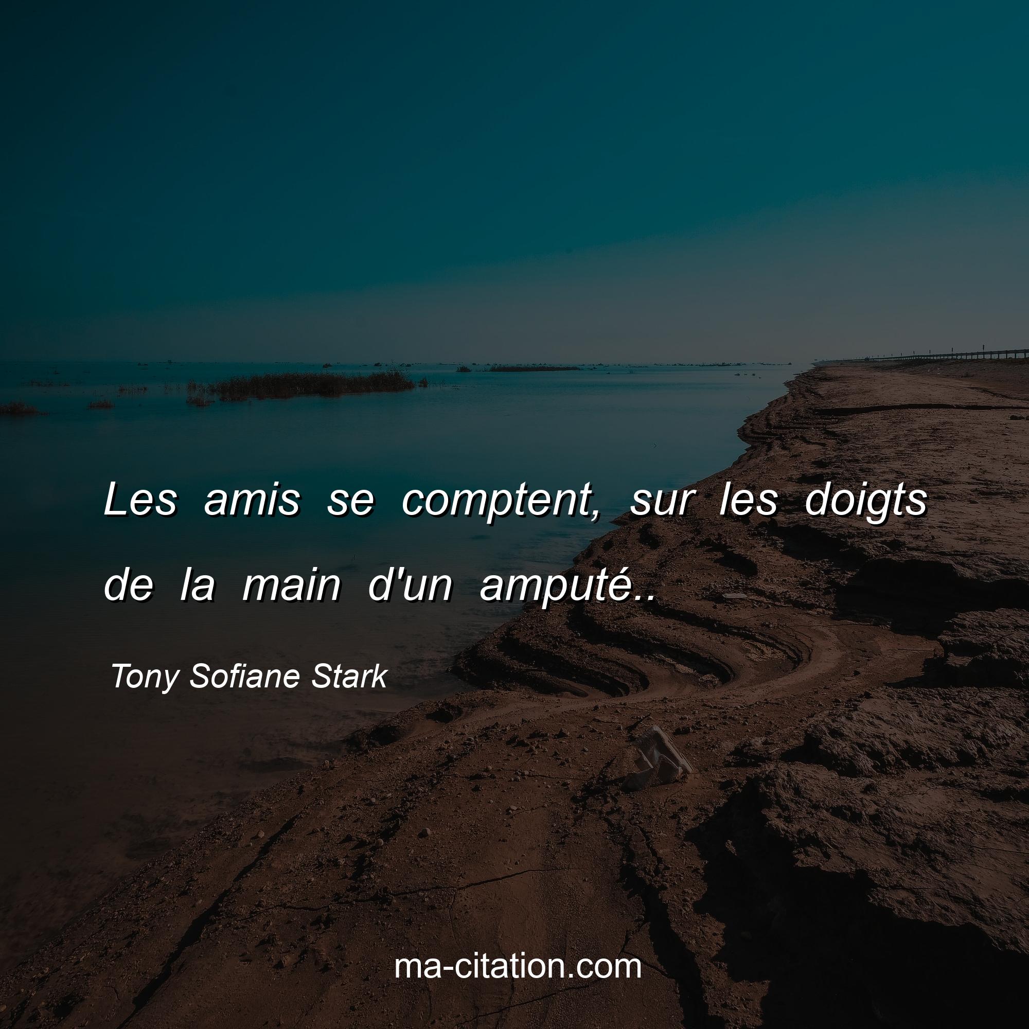 Citation sur l'amitié de Tony Sofiane Stark :Les amis se comptent, sur les doigts de la main d'un amputé..