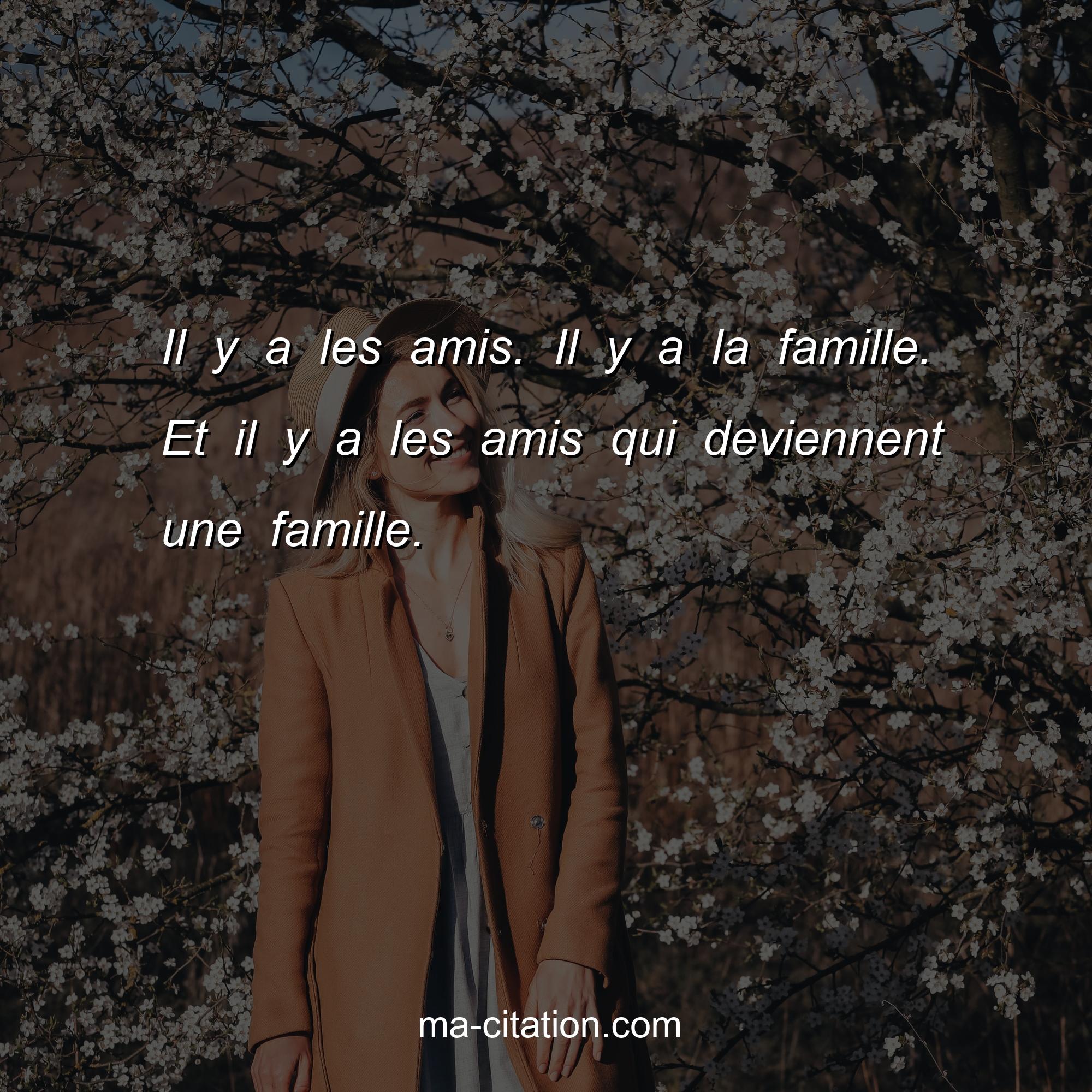 Citation sur l'amitié :Il y a les amis. Il y a la famille. Et il y a les amis qui deviennent une famille.