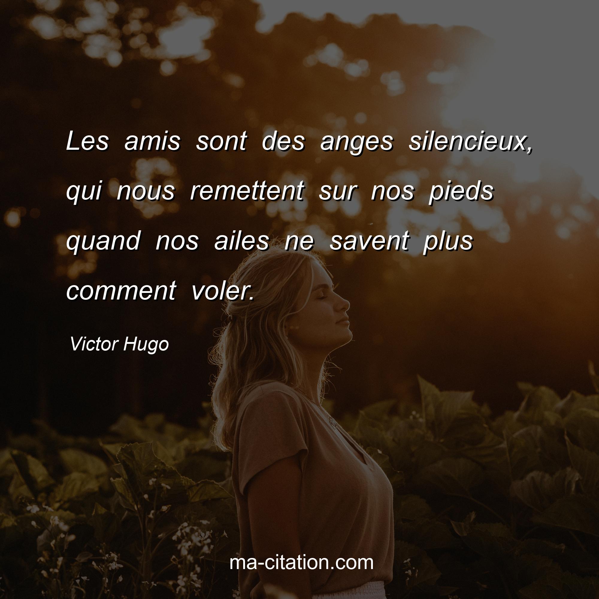 Citation sur l'amitié de Victor Hugo :Les amis sont des anges silencieux, qui nous remettent sur nos pieds quand nos ailes ne savent plus comment voler.