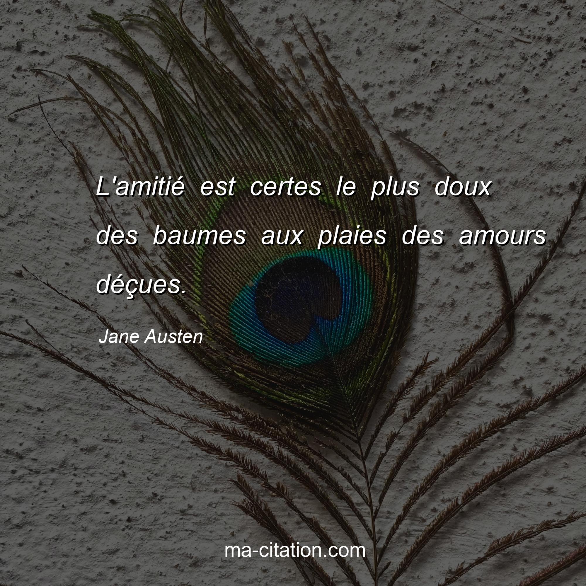 Citation sur l'amitié de Jane Austen :L'amitié est certes le plus doux des baumes aux plaies des amours déçues.