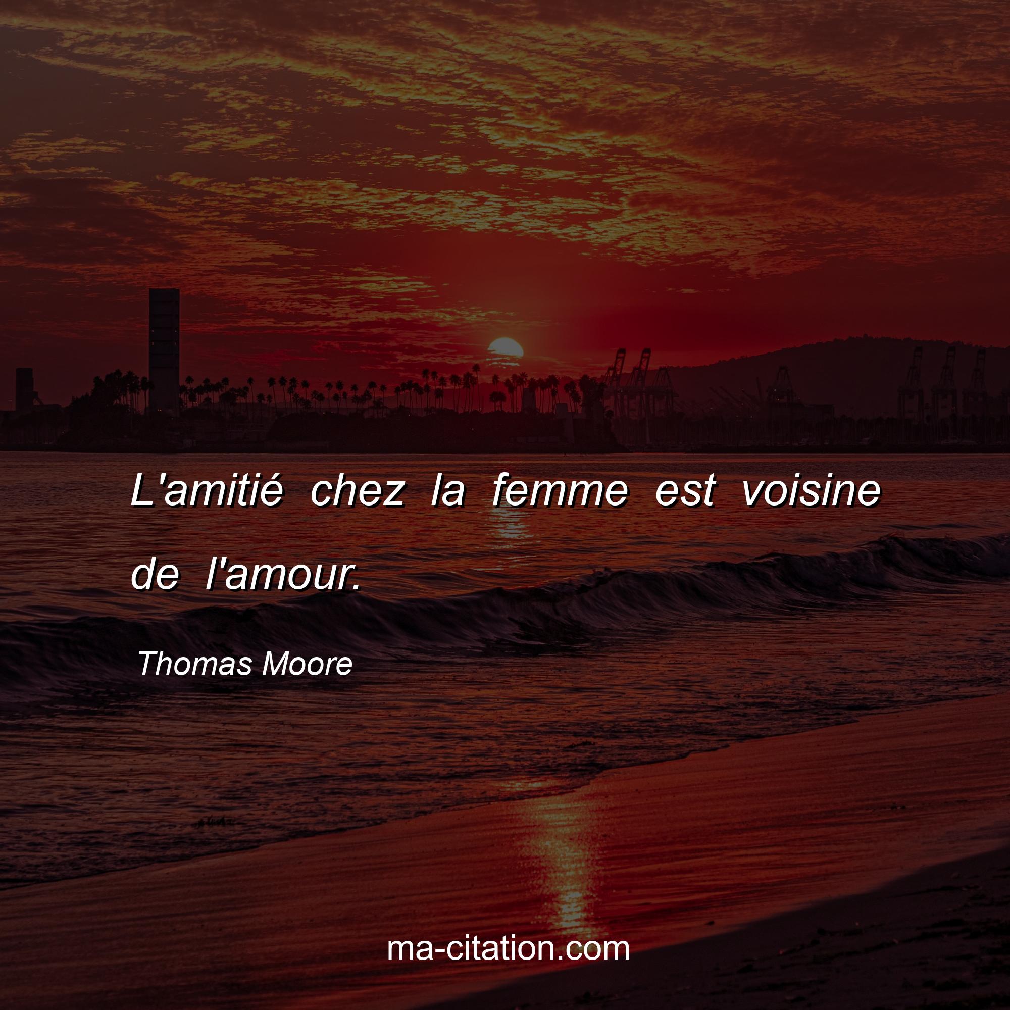 Thomas Moore est l'auteur de la citation sur l'amitié "L'amitié chez la femme est voisine de l'amour.".
