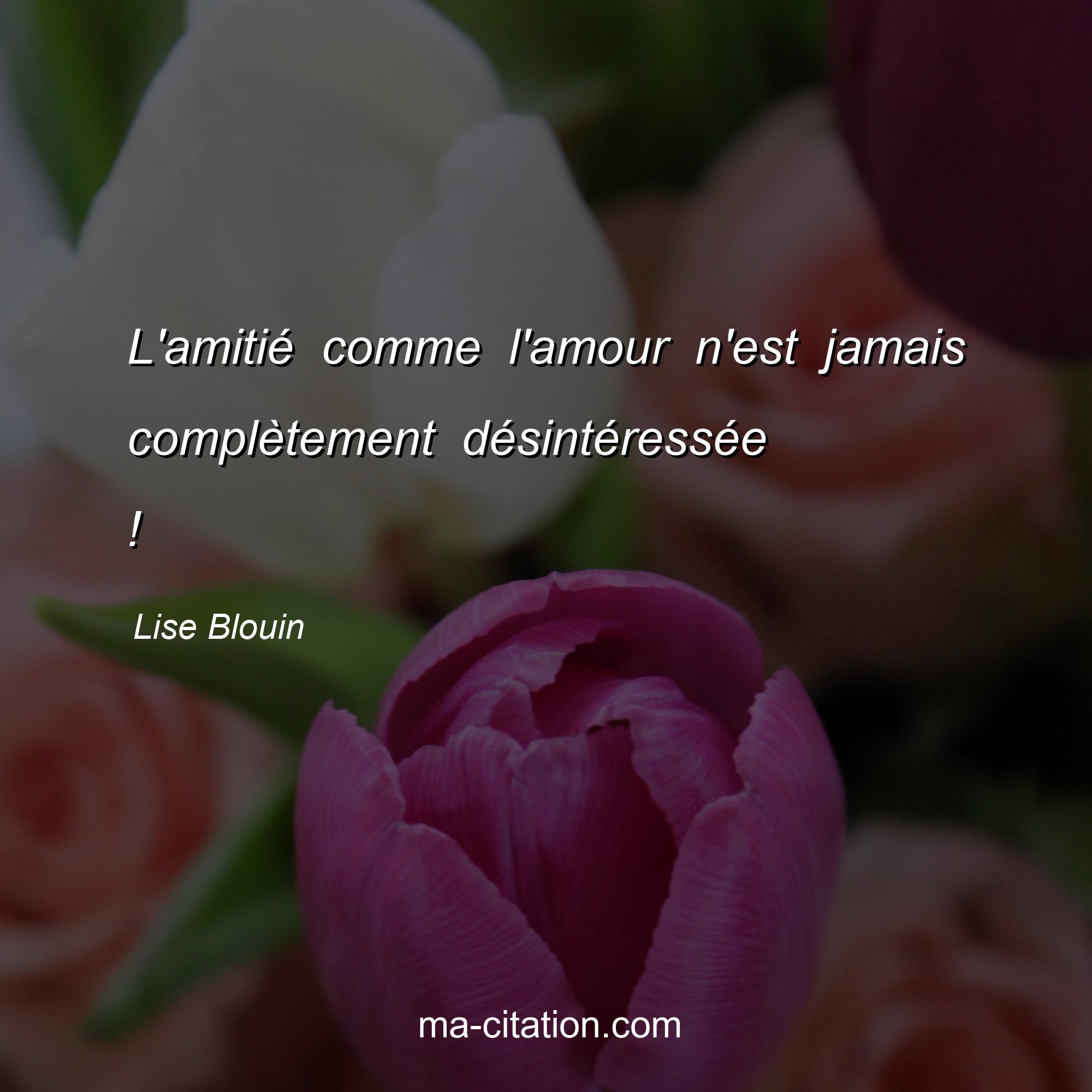Citation sur l'amitié de Lise Blouin :L'amitié comme l'amour n'est jamais complètement désintéressée !