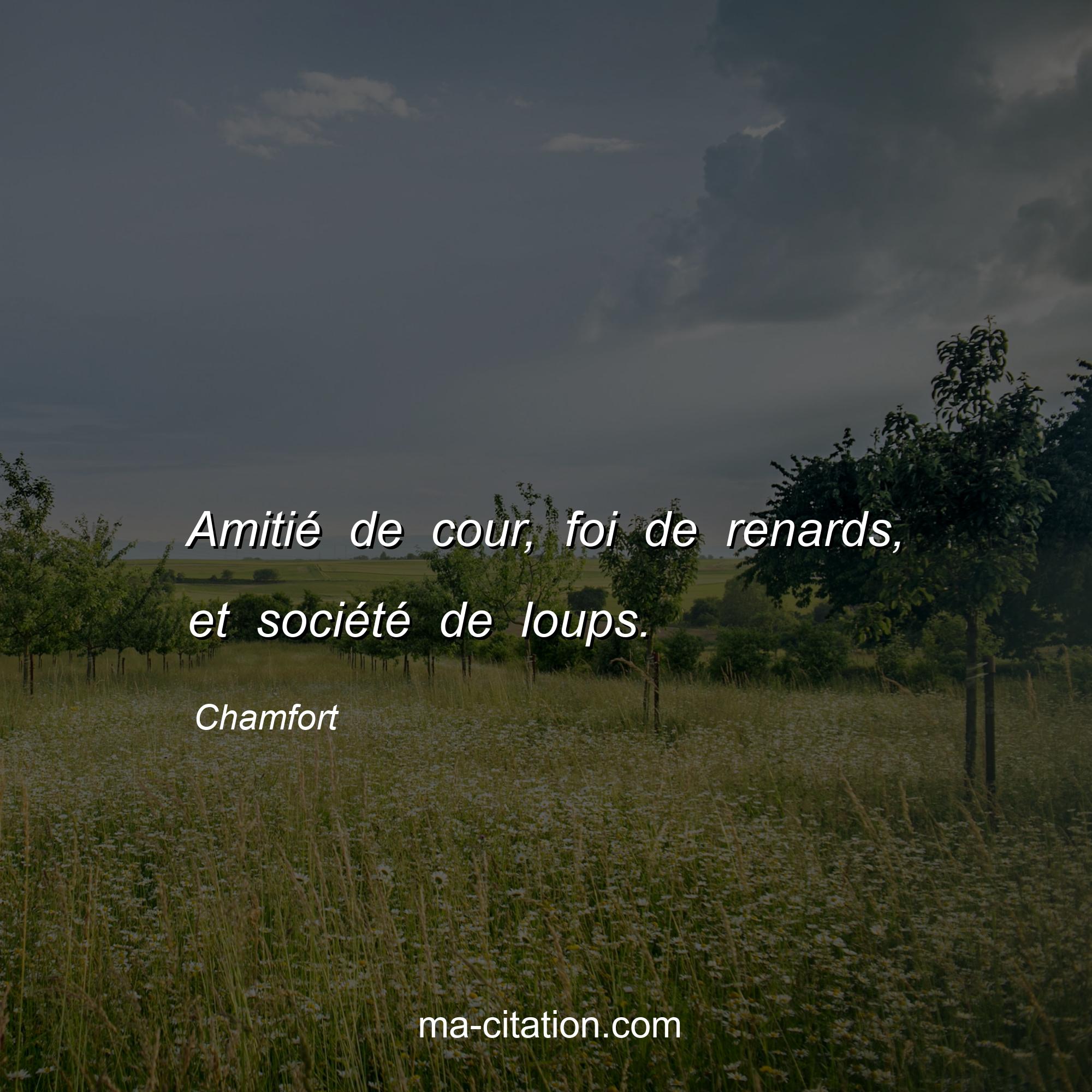 Citation sur l'amitié de Chamfort :Amitié de cour, foi de renards, et société de loups.