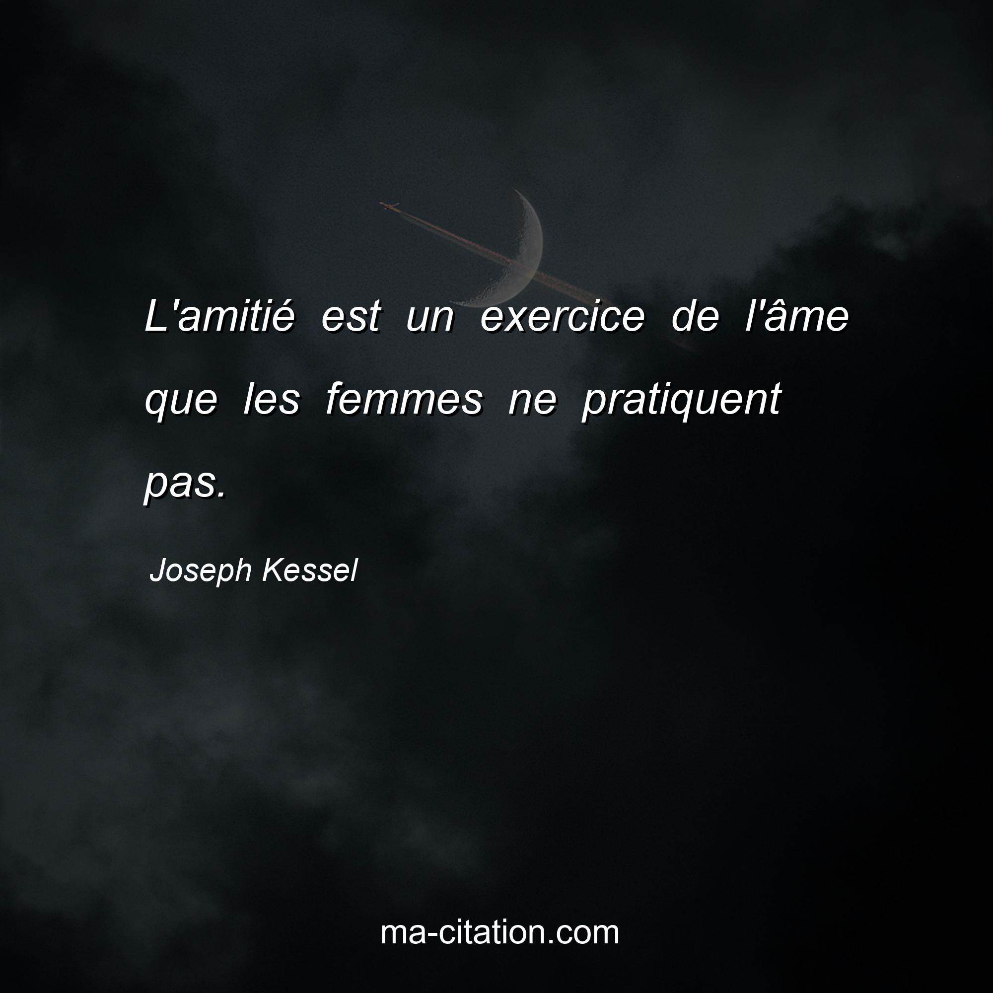 Citation sur l'amitié de Joseph Kessel :L'amitié est un exercice de l'âme que les femmes ne pratiquent pas.