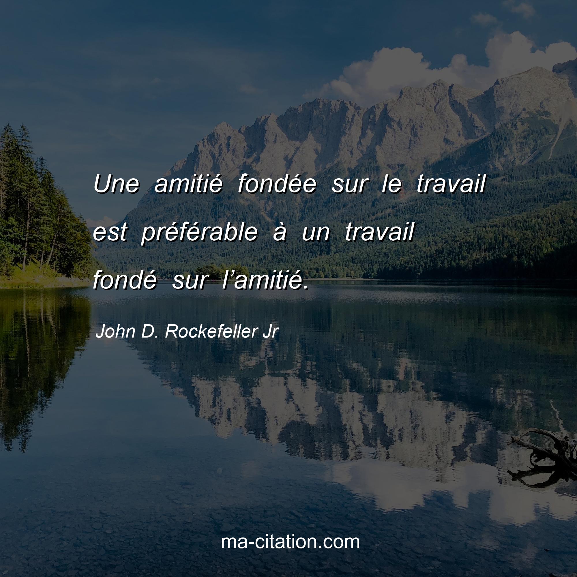 John D. Rockefeller Jr est l'auteur de la citation sur l'amitié "Une amitié fondée sur le travail est préférable à un travail fondé sur l’amitié.".