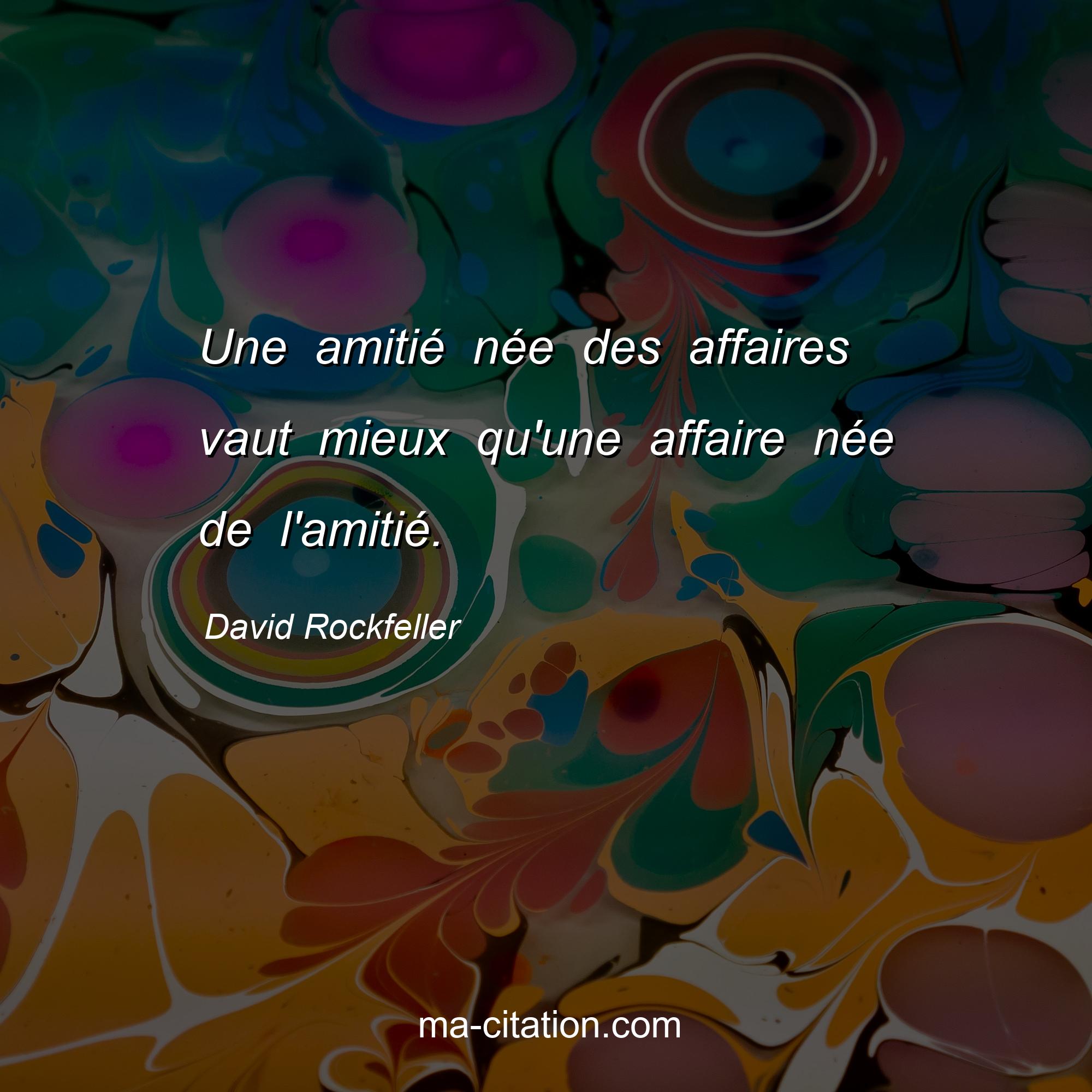 Citation sur l'amitié de David Rockfeller :Une amitié née des affaires vaut mieux qu'une affaire née de l'amitié.