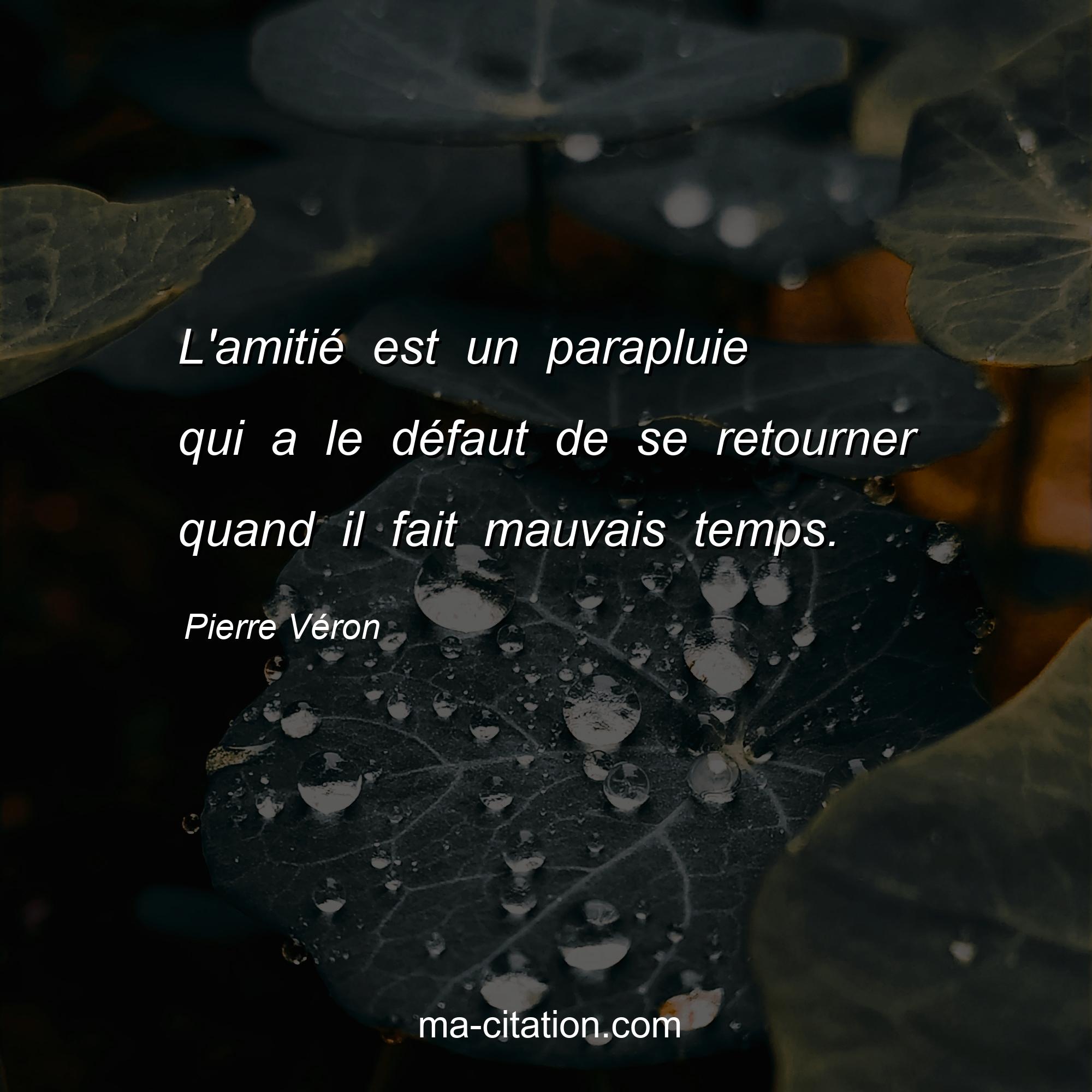 Pierre Véron est l'auteur de la citation sur l'amitié "L'amitié est un parapluie qui a le défaut de se retourner quand il fait mauvais temps.".