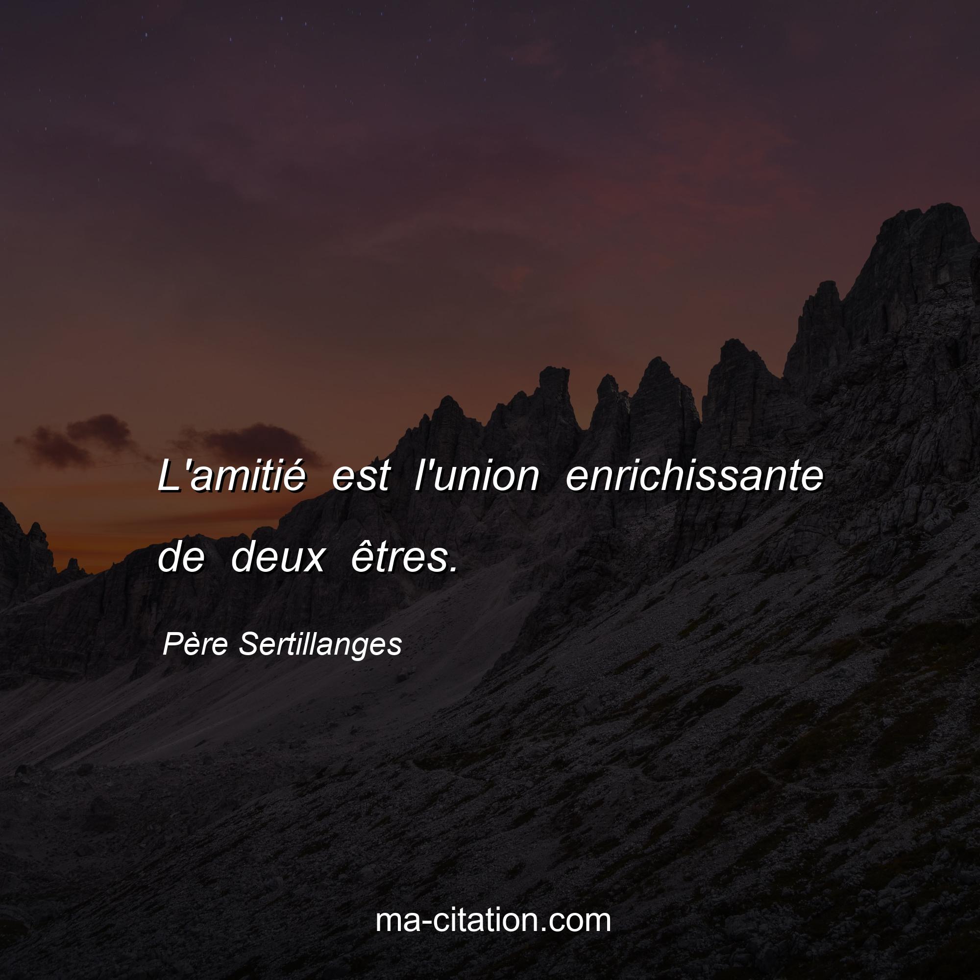 Père Sertillanges : L'amitié est l'union enrichissante de deux êtres.
