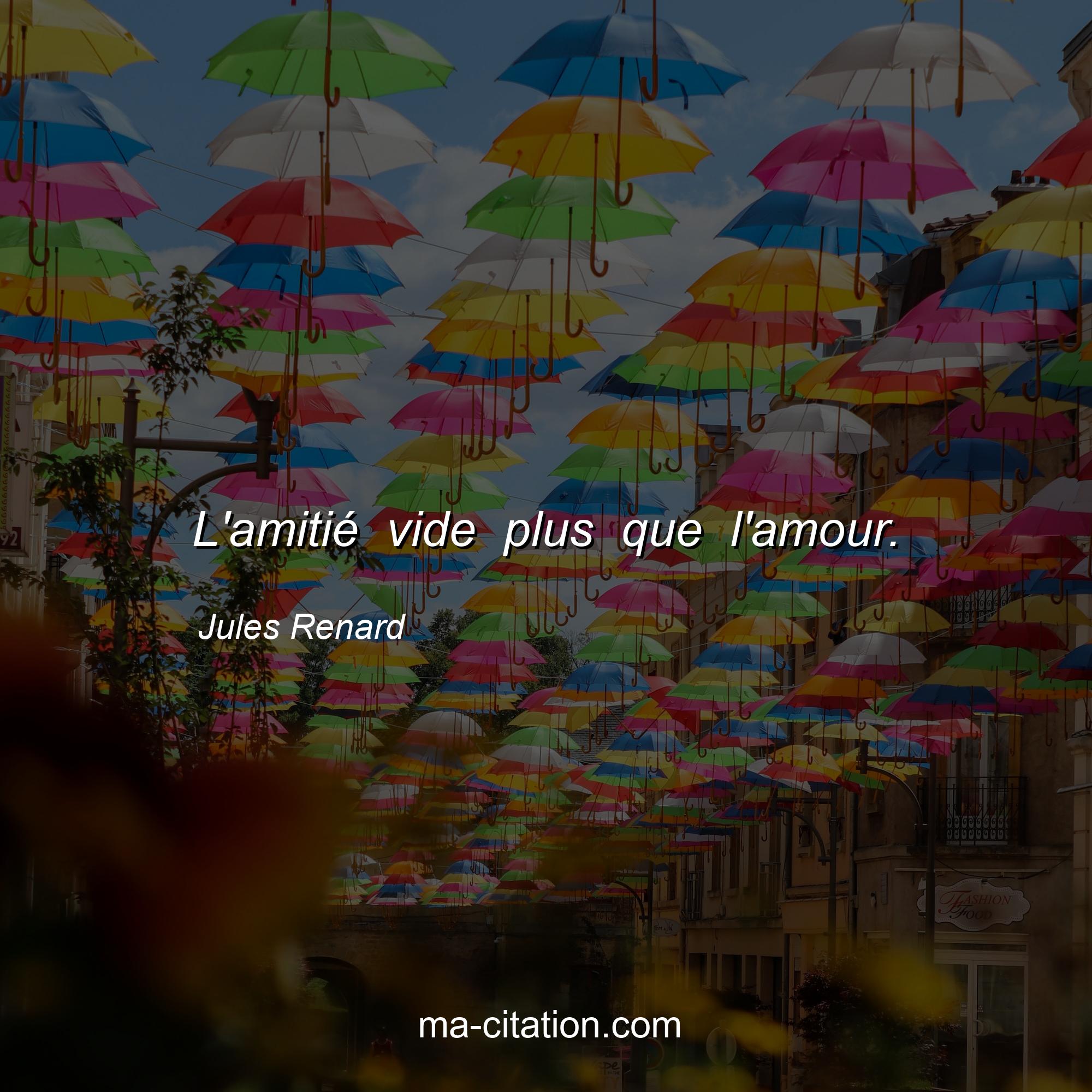 Citation sur l'amitié de Jules Renard :L'amitié vide plus que l'amour.