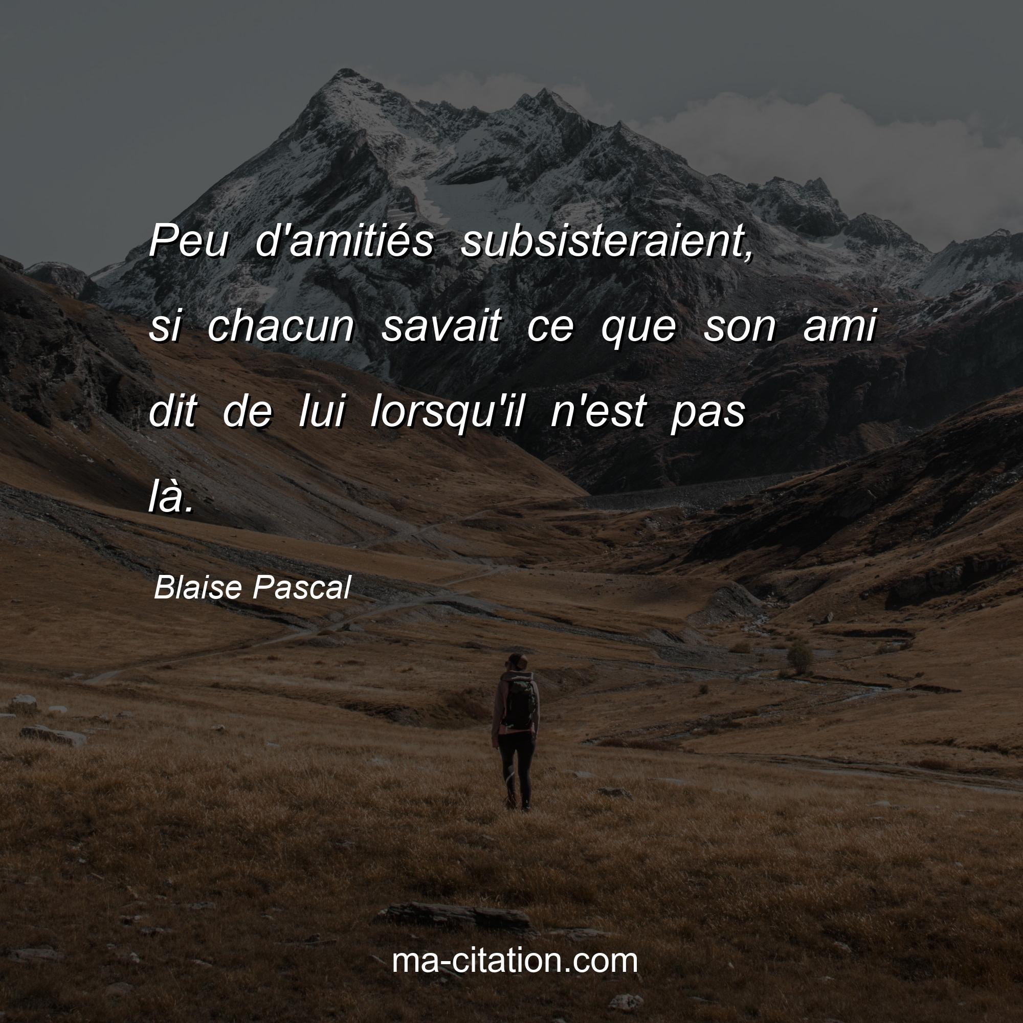 Citation sur l'amitié de Blaise Pascal :Peu d'amitiés subsisteraient, si chacun savait ce que son ami dit de lui lorsqu'il n'est pas là .