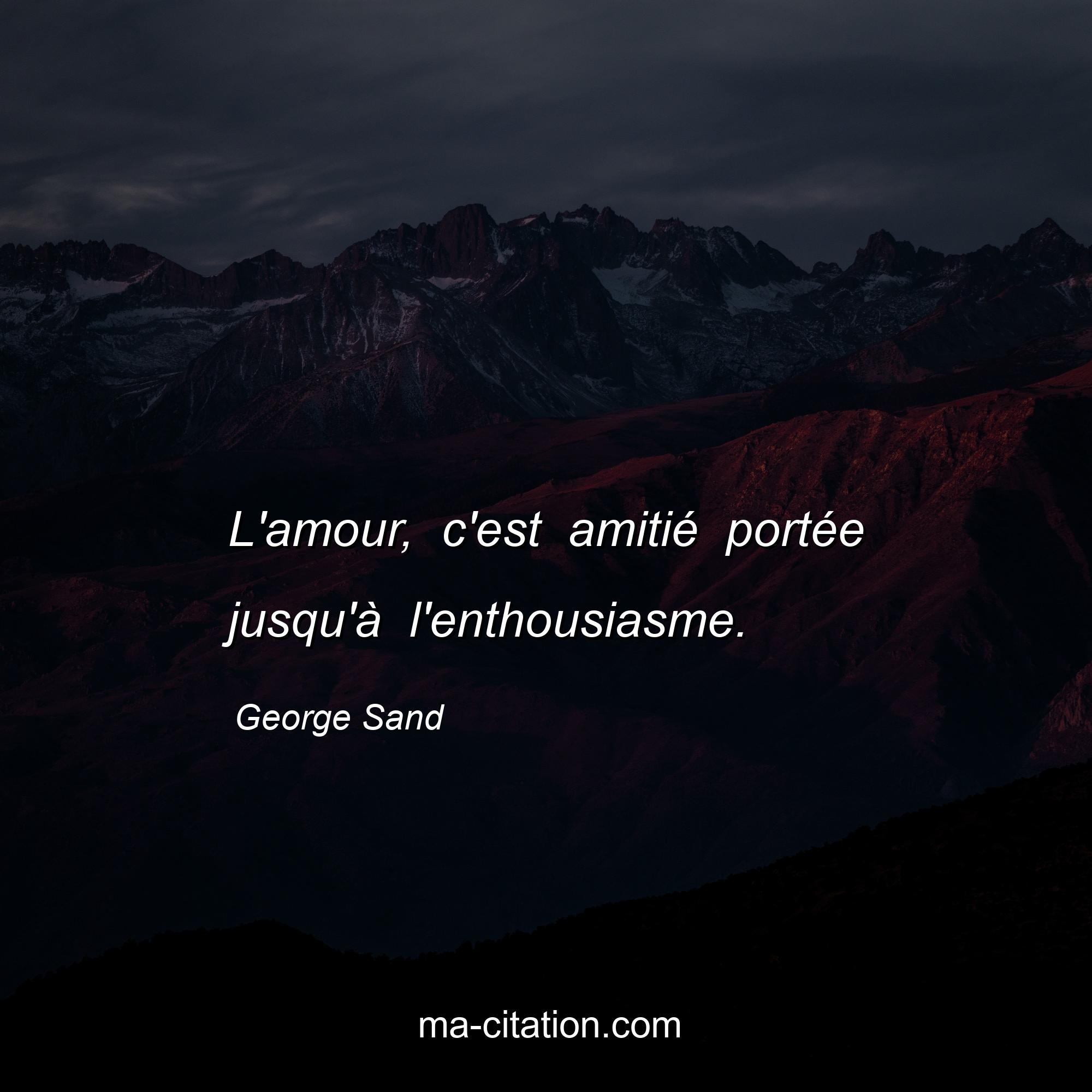 George Sand est l'auteur de la citation sur l'amitié "L'amour, c'est amitié portée jusqu'à l'enthousiasme.".