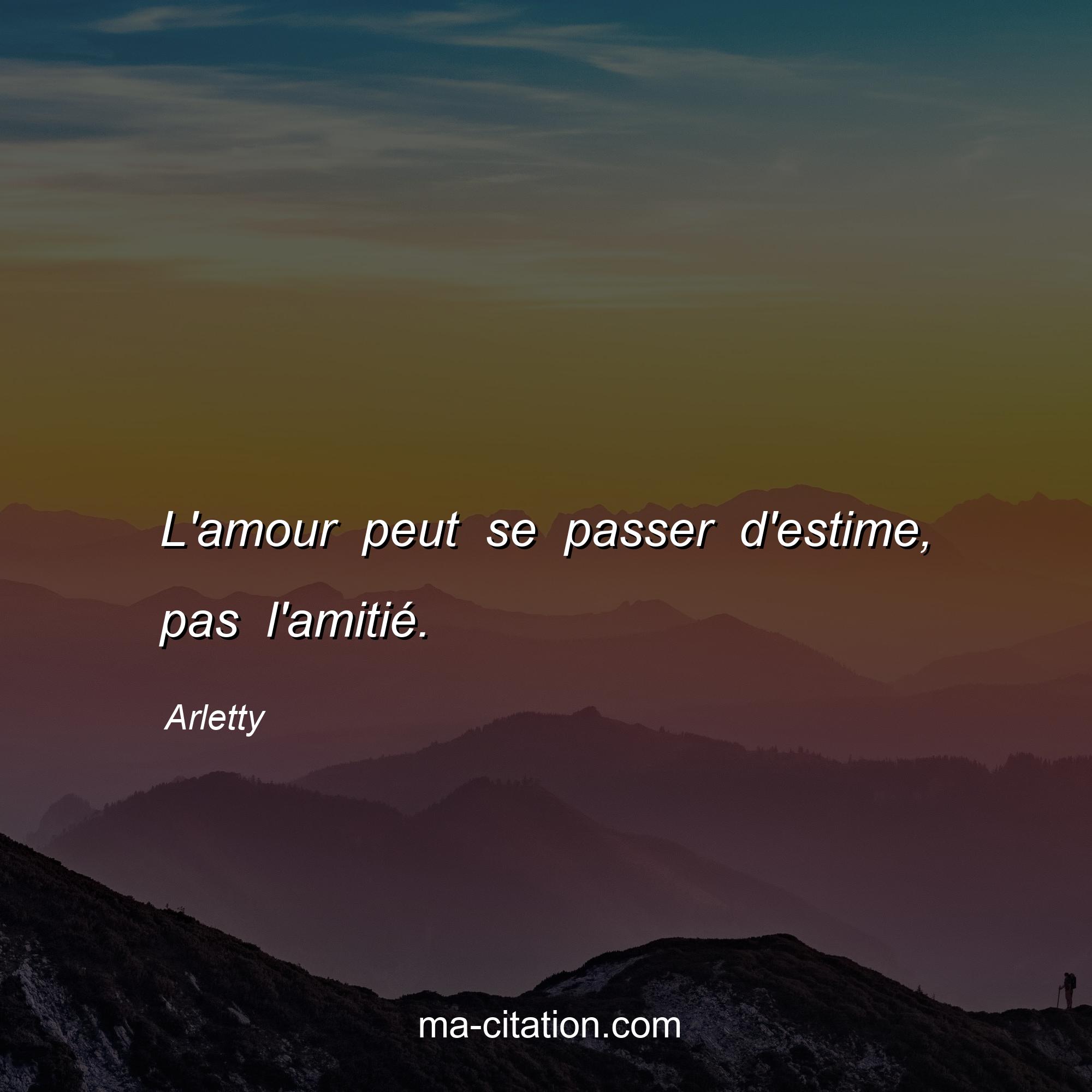 Citation sur l'amitié d'Arletty :L'amour peut se passer d'estime, pas l'amitié.