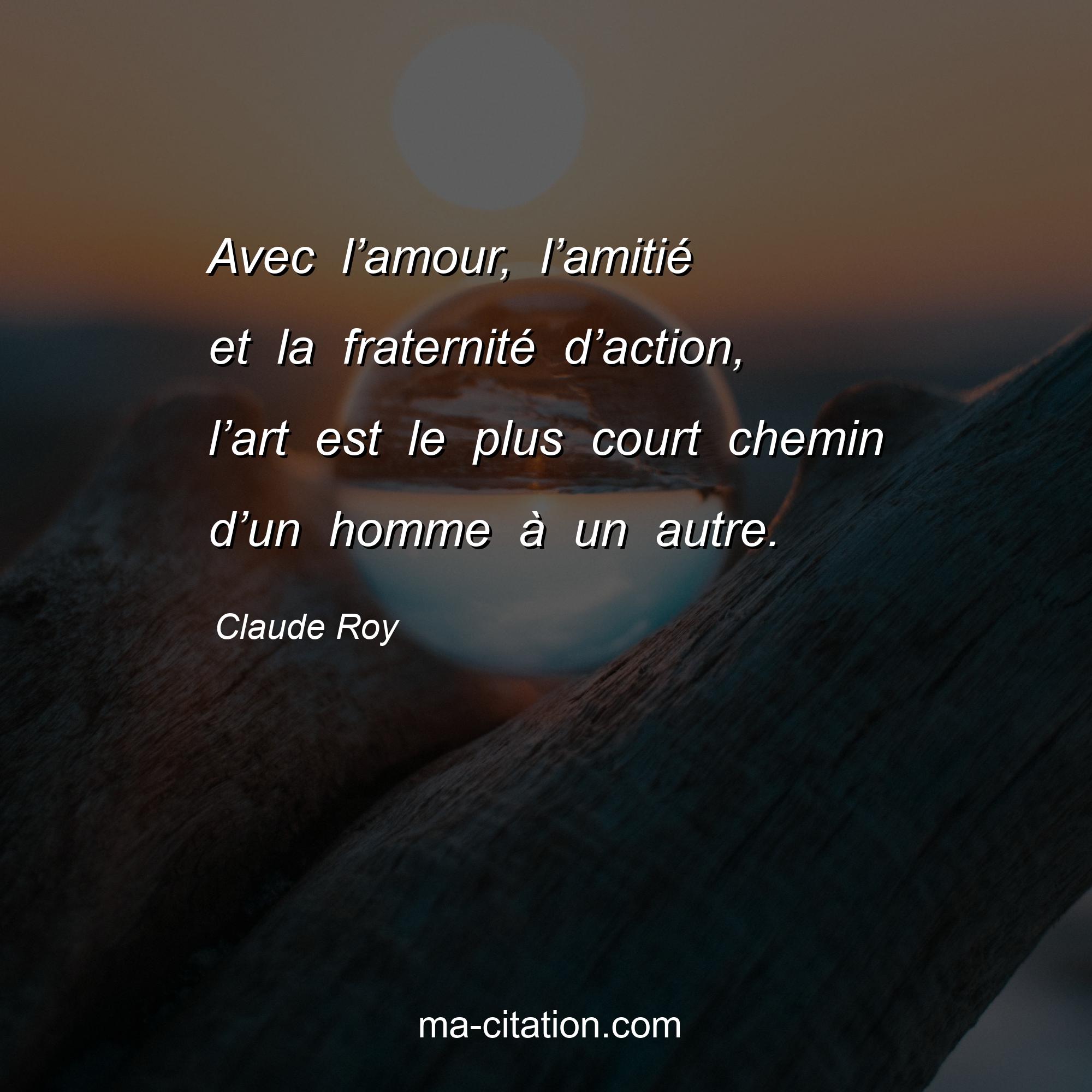 Claude Roy est l'auteur de la citation sur l'amitié "Avec l’amour, l’amitié et la fraternité d’action, l’art est le plus court chemin d’un homme à un autre.".