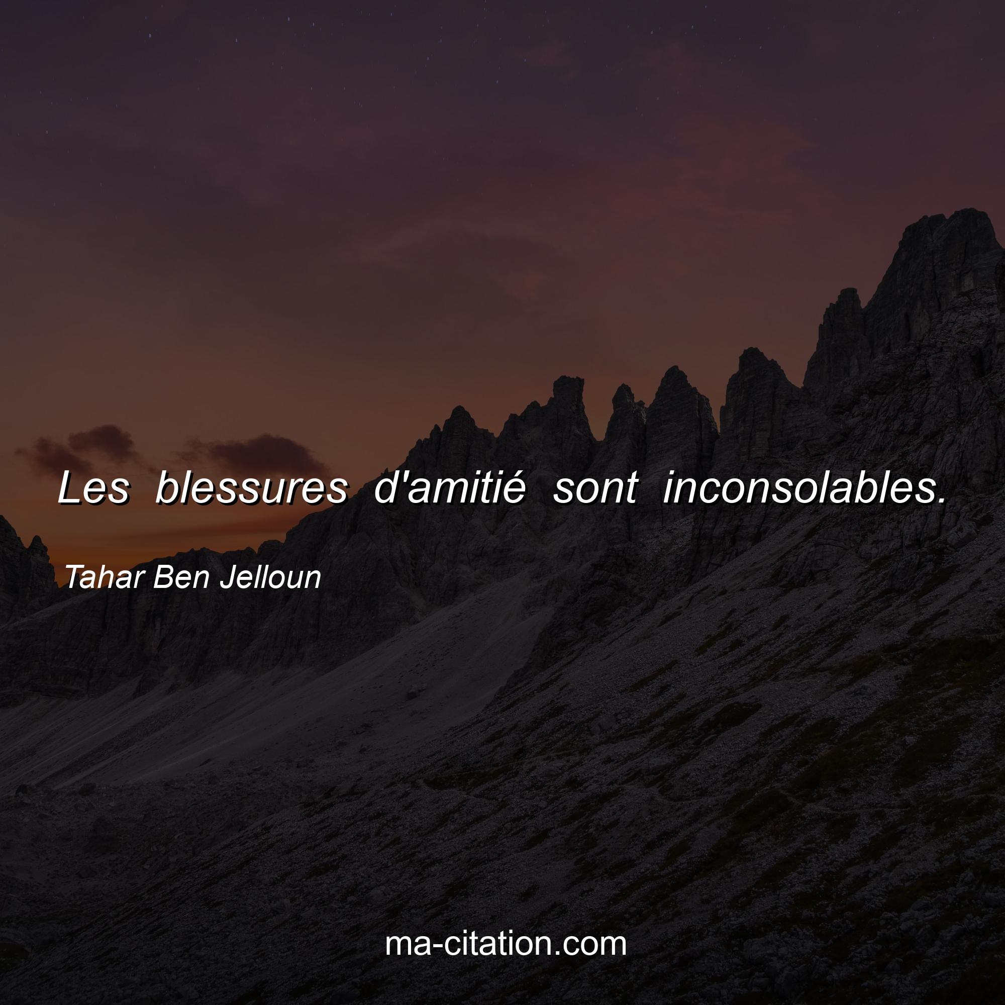 Citation sur l'amitié de Tahar Ben Jelloun :Les blessures d'amitié sont inconsolables.