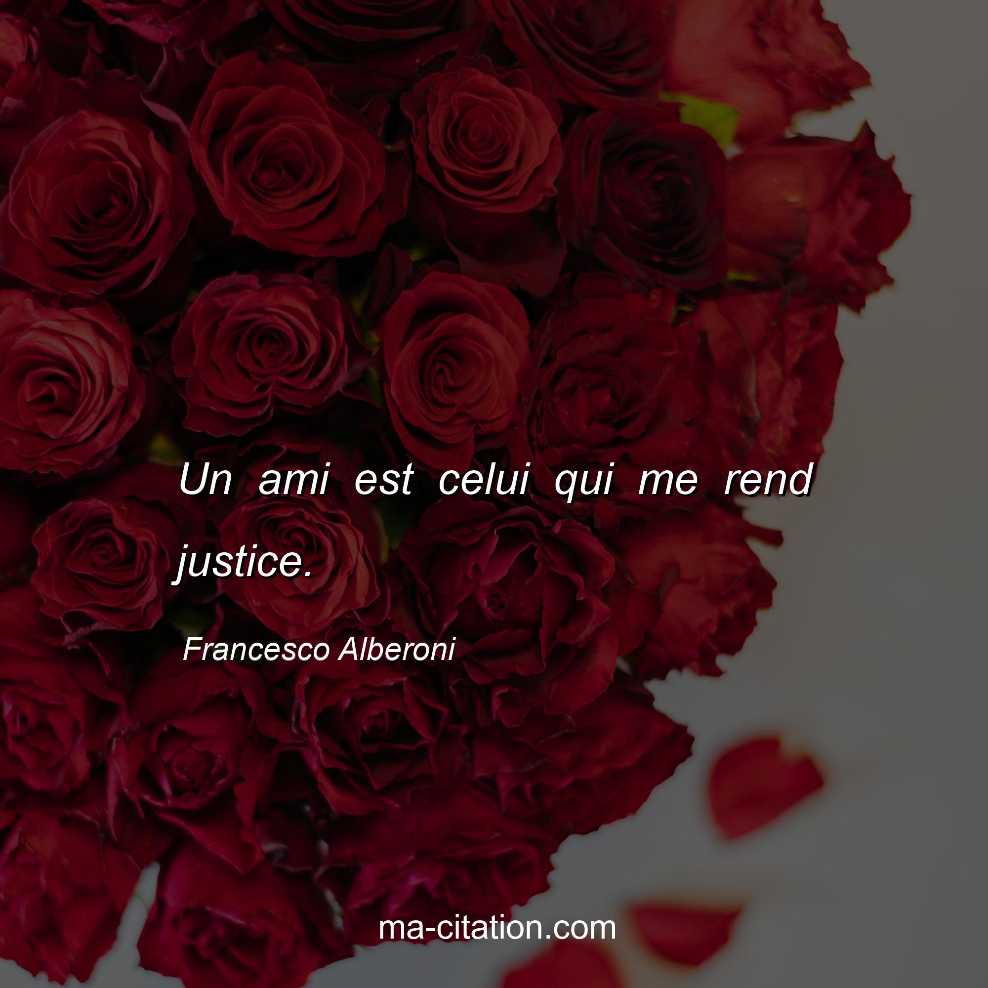 Francesco Alberoni est l'auteur de la citation sur l'amitié "Un ami est celui qui me rend justice.".