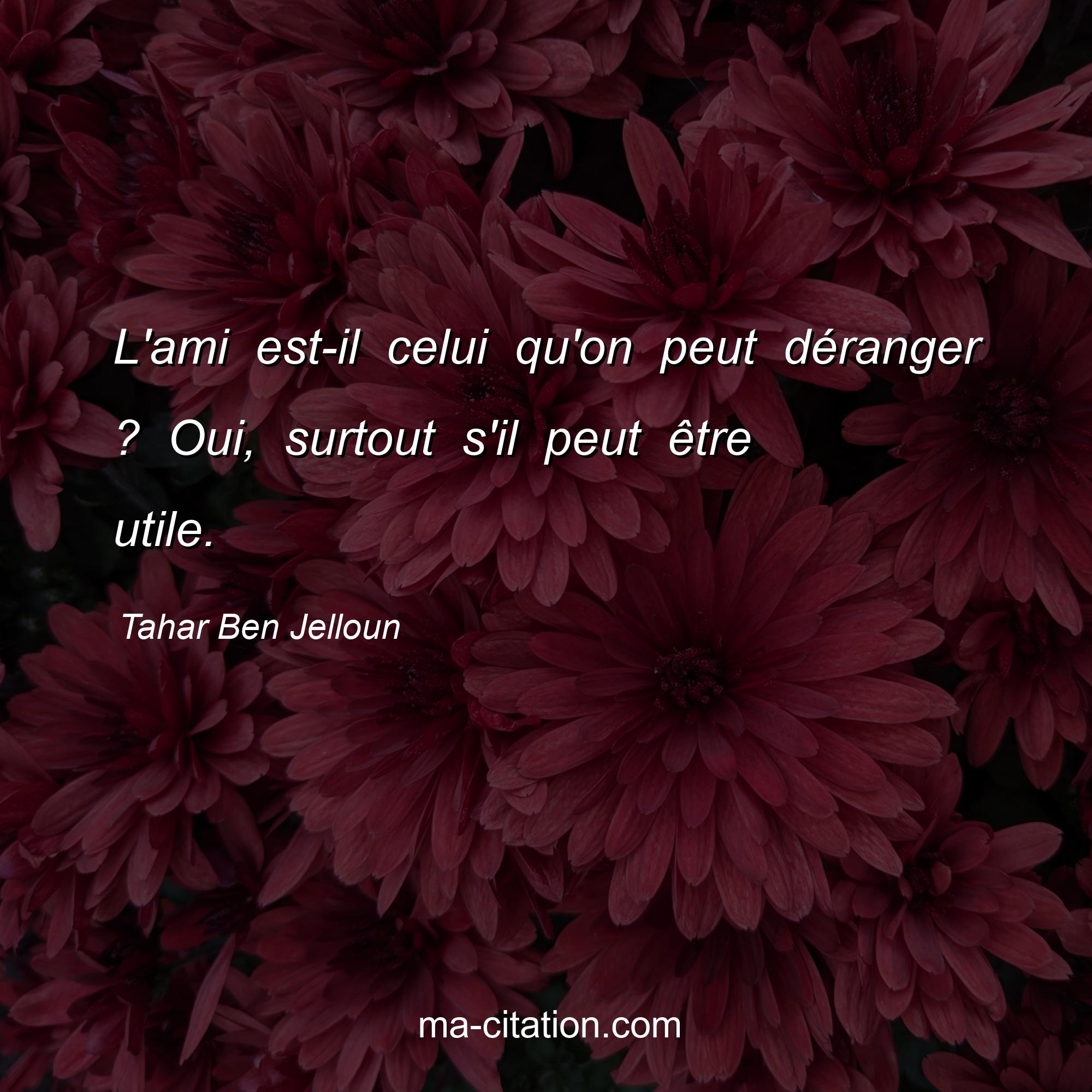 Citation sur l'amitié de Tahar Ben Jelloun :L'ami est-il celui qu'on peut déranger ? Oui, surtout s'il peut être utile.