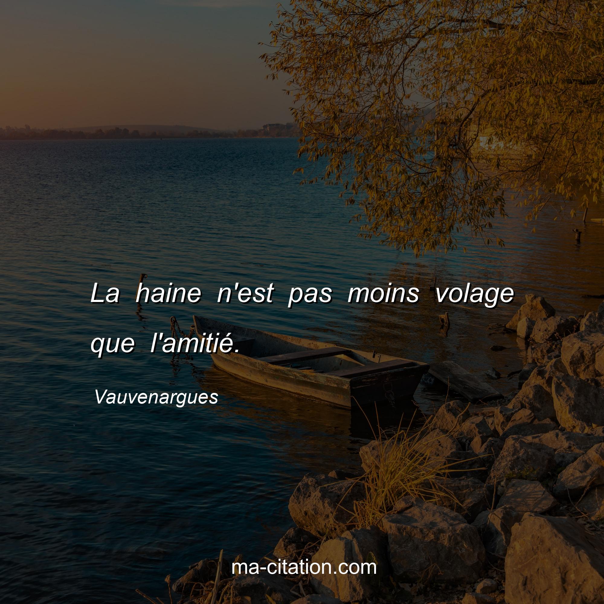 Citation sur l'amitié de Vauvenargues :La haine n'est pas moins volage que l'amitié.
