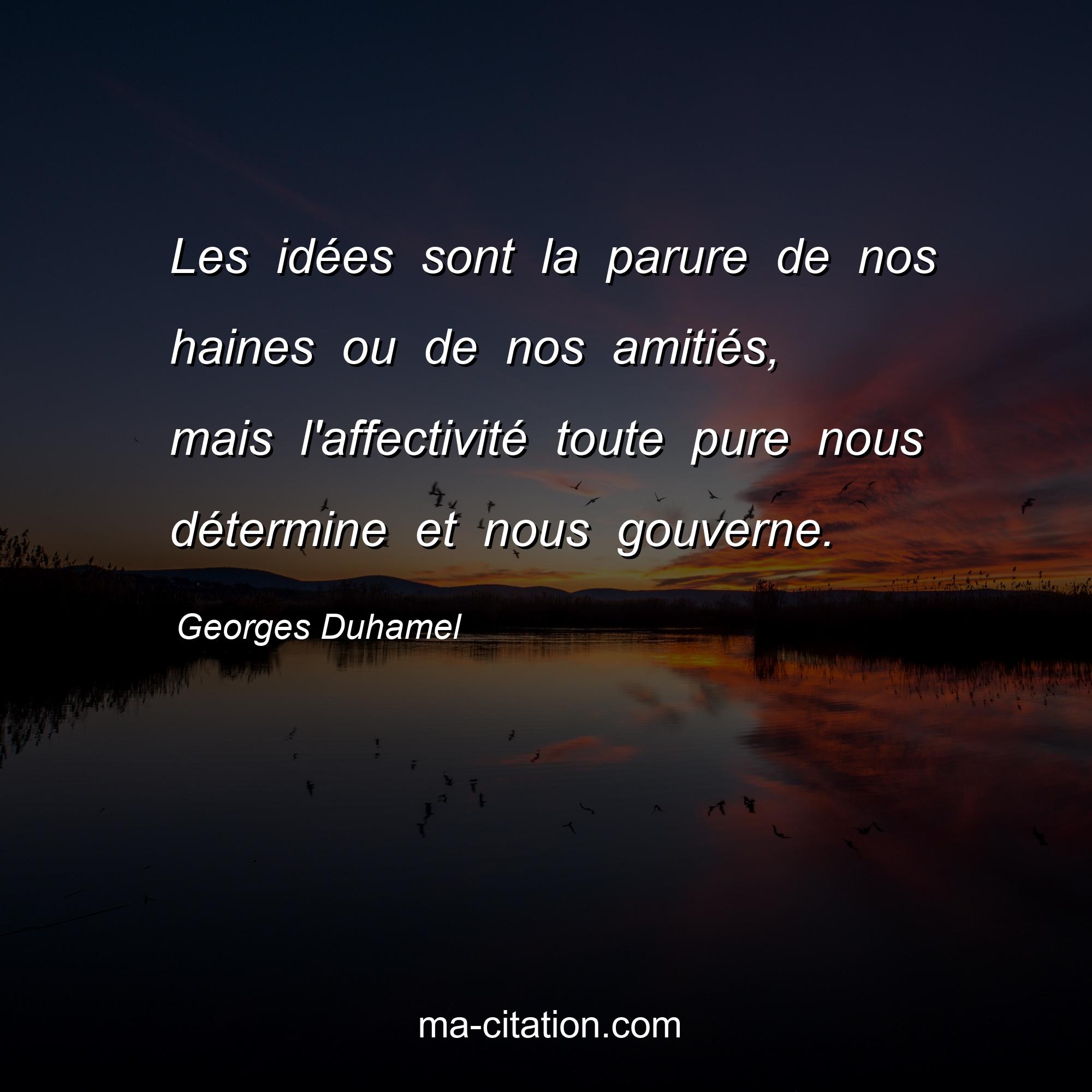 Citation sur l'amitié de Georges Duhamel :Les idées sont la parure de nos haines ou de nos amitiés, mais l'affectivité toute pure nous détermine et nous gouverne.