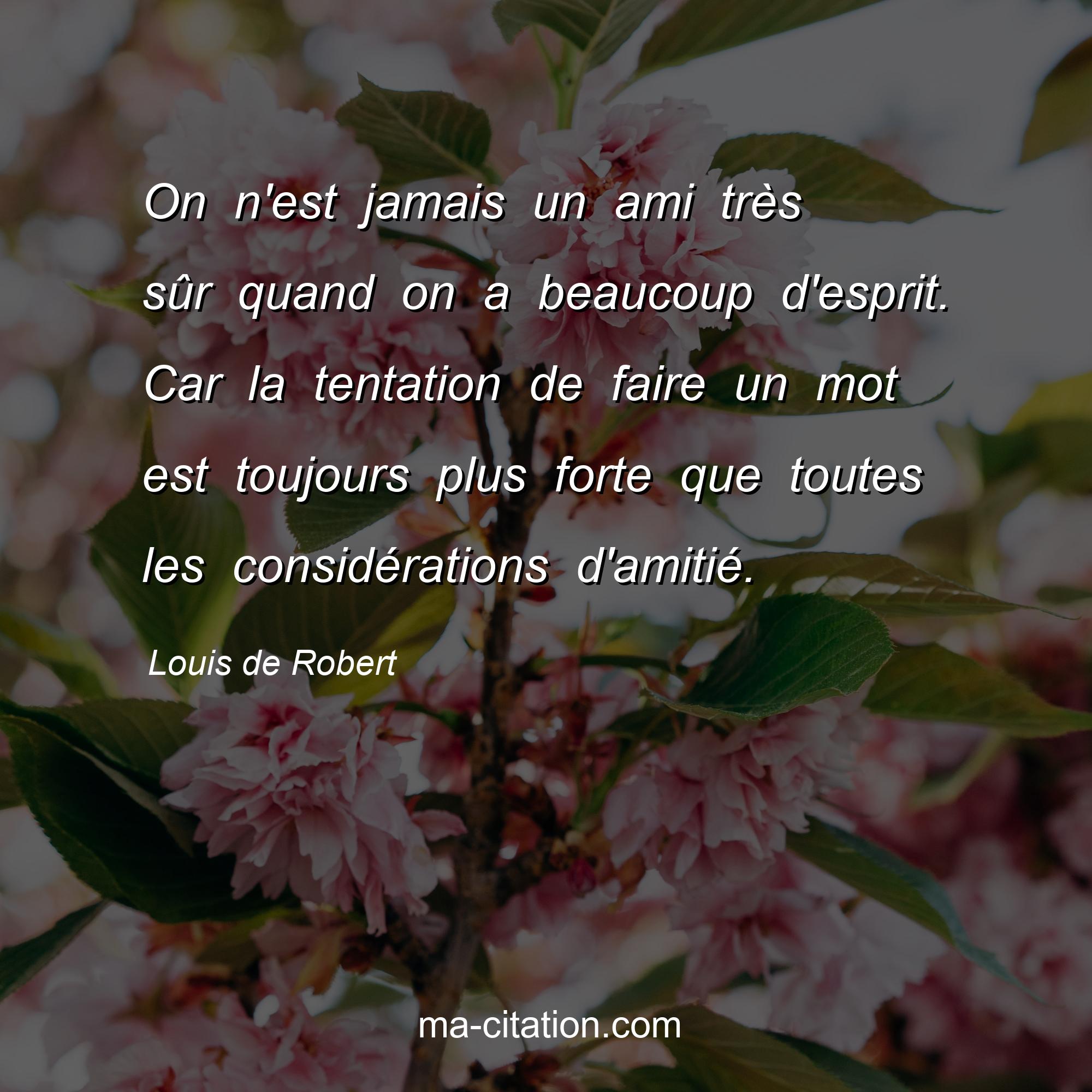 Louis de Robert : On n'est jamais un ami très sûr quand on a beaucoup d'esprit. Car la tentation de faire un mot est toujours plus forte que toutes les considérations d'amitié.