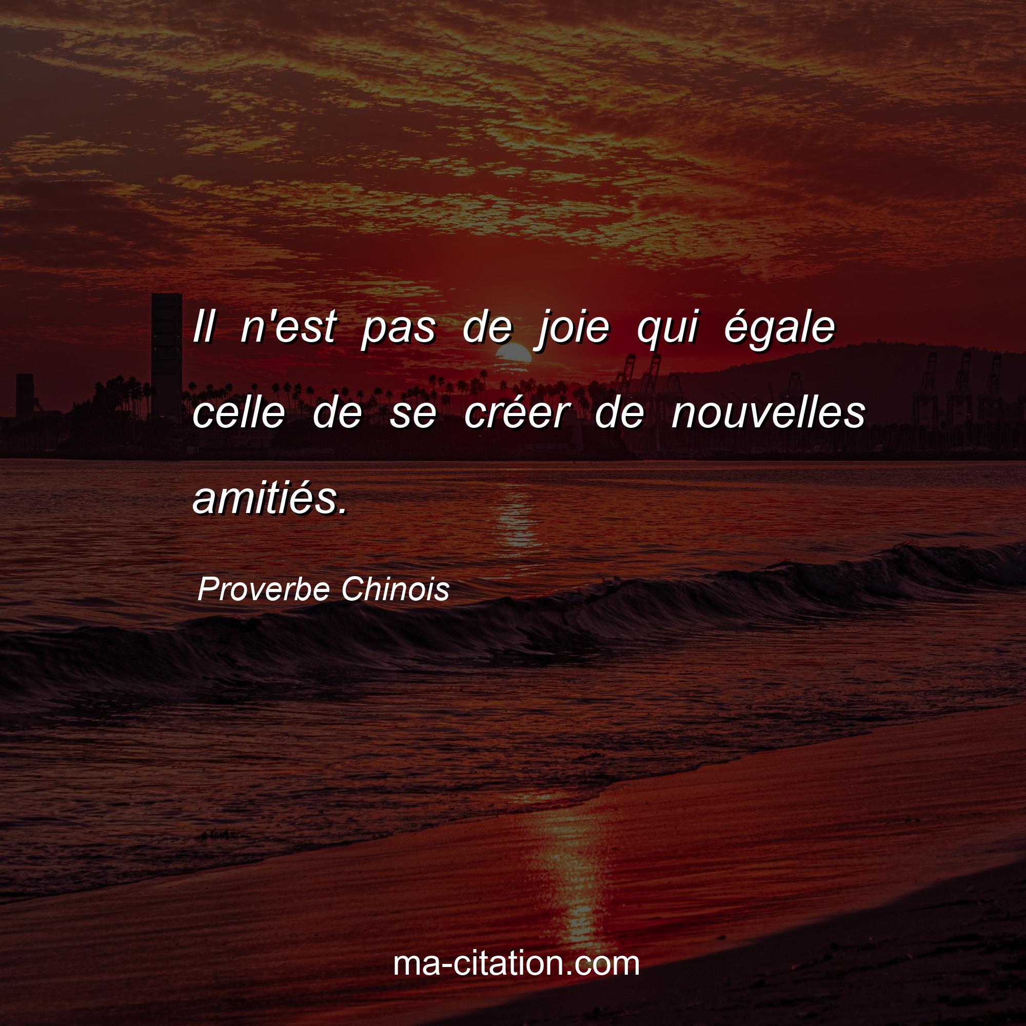 Proverbe Chinois sur l'amitié :Il n'est pas de joie qui égale celle de se créer de nouvelles amitiés.