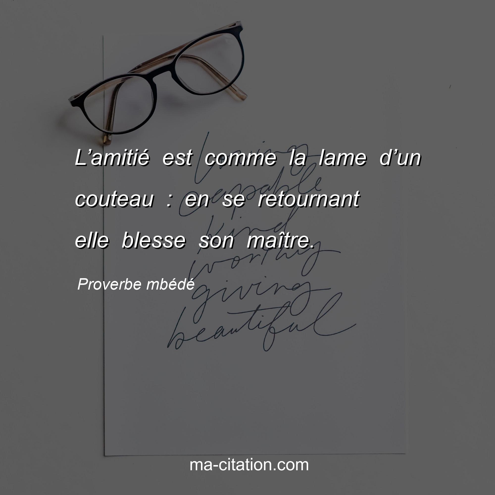 Proverbe mbédé sur l'amitié :L’amitié est comme la lame d’un couteau : en se retournant elle blesse son maître.