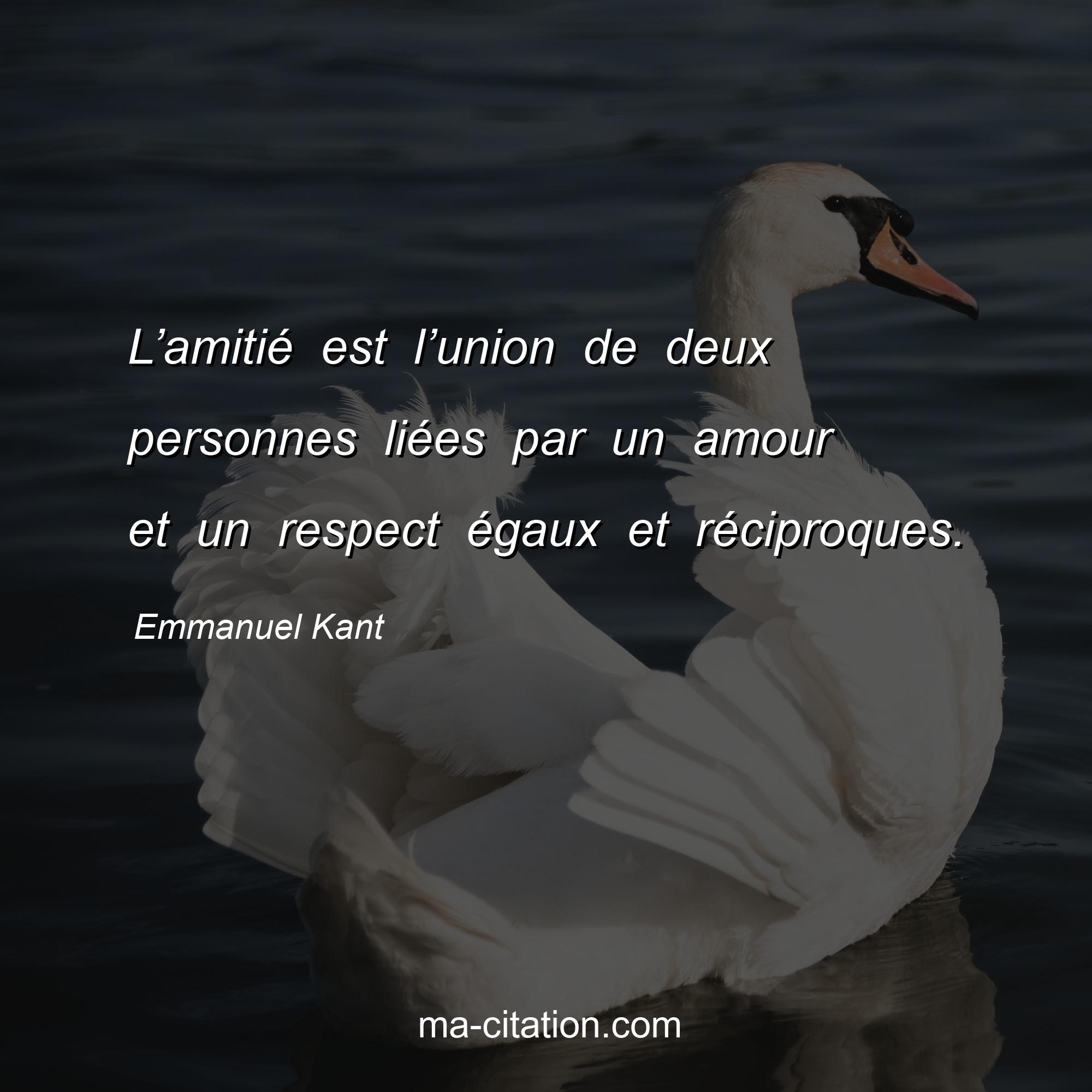 Citation sur l'amitié d'Emmanuel Kant :L’amitié est l’union de deux personnes liées par un amour et un respect égaux et réciproques.