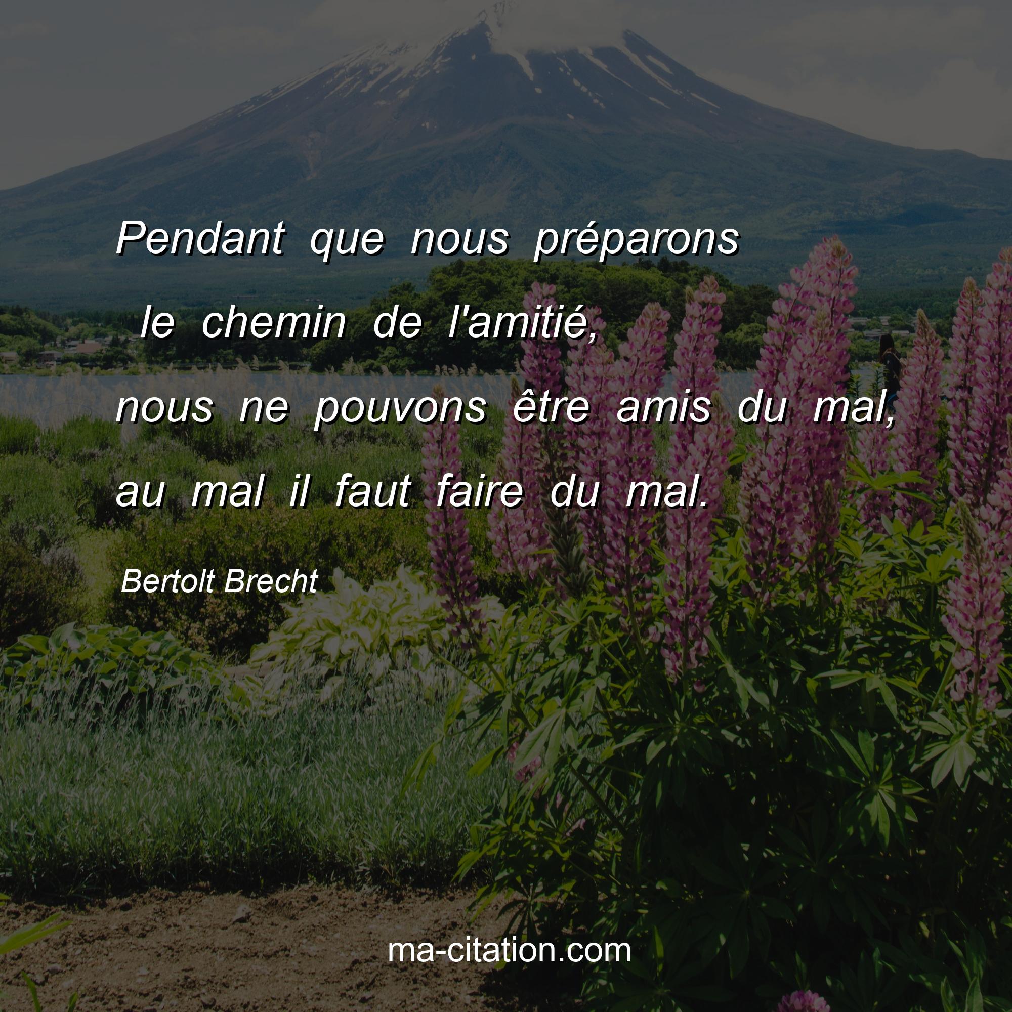 Citation sur l'amitié de Bertolt Brecht :Pendant que nous préparons le chemin de l'amitié, nous ne pouvons être amis du mal, au mal il faut faire du mal.