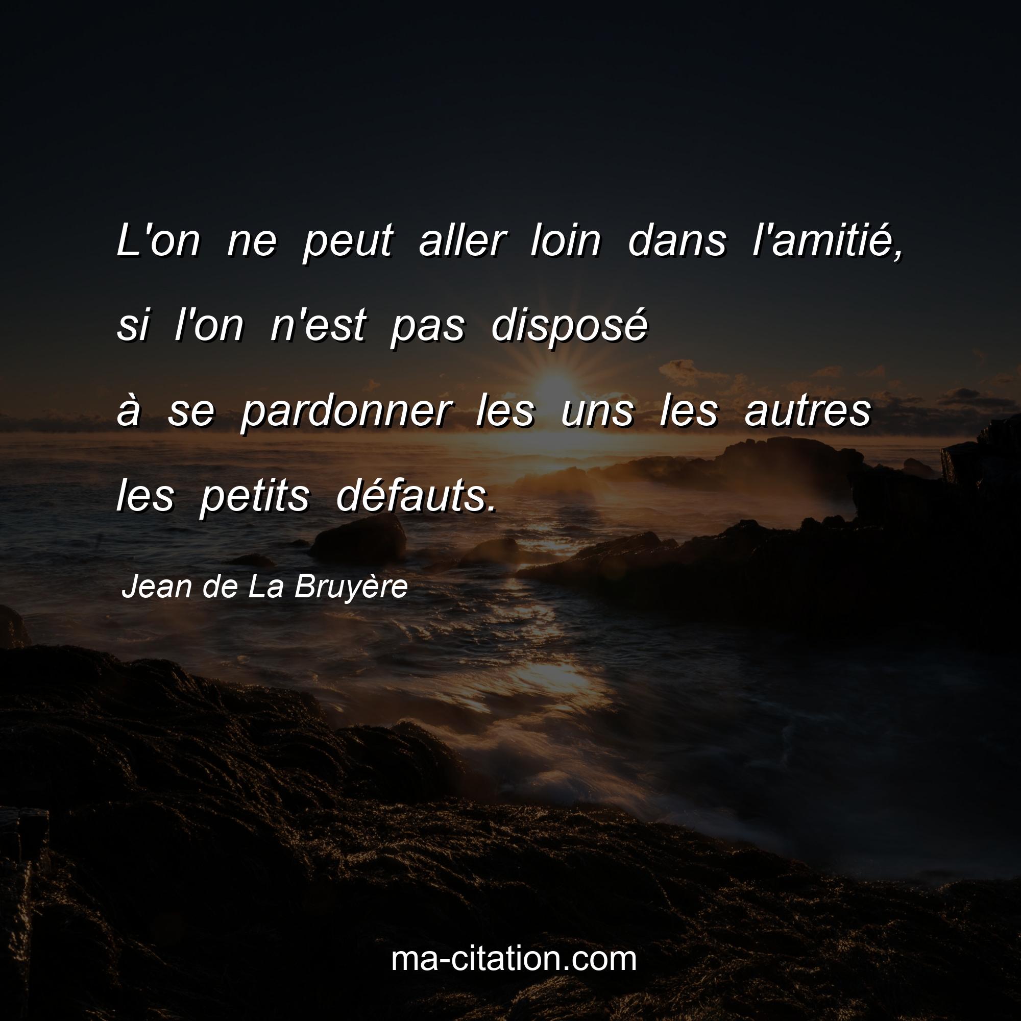 Jean de La Bruyère : L'on ne peut aller loin dans l'amitié, si l'on n'est pas disposé à se pardonner les uns les autres les petits défauts.