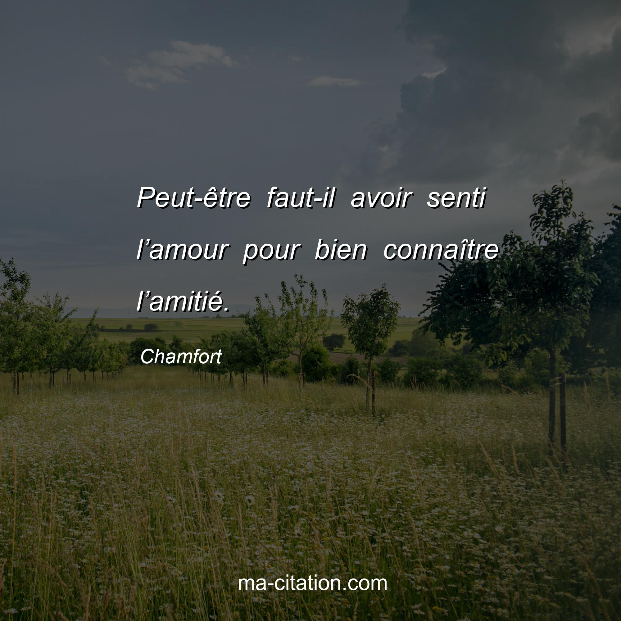 Citation sur l'amitié de Chamfort :Peut-être faut-il avoir senti l’amour pour bien connaître l’amitié.