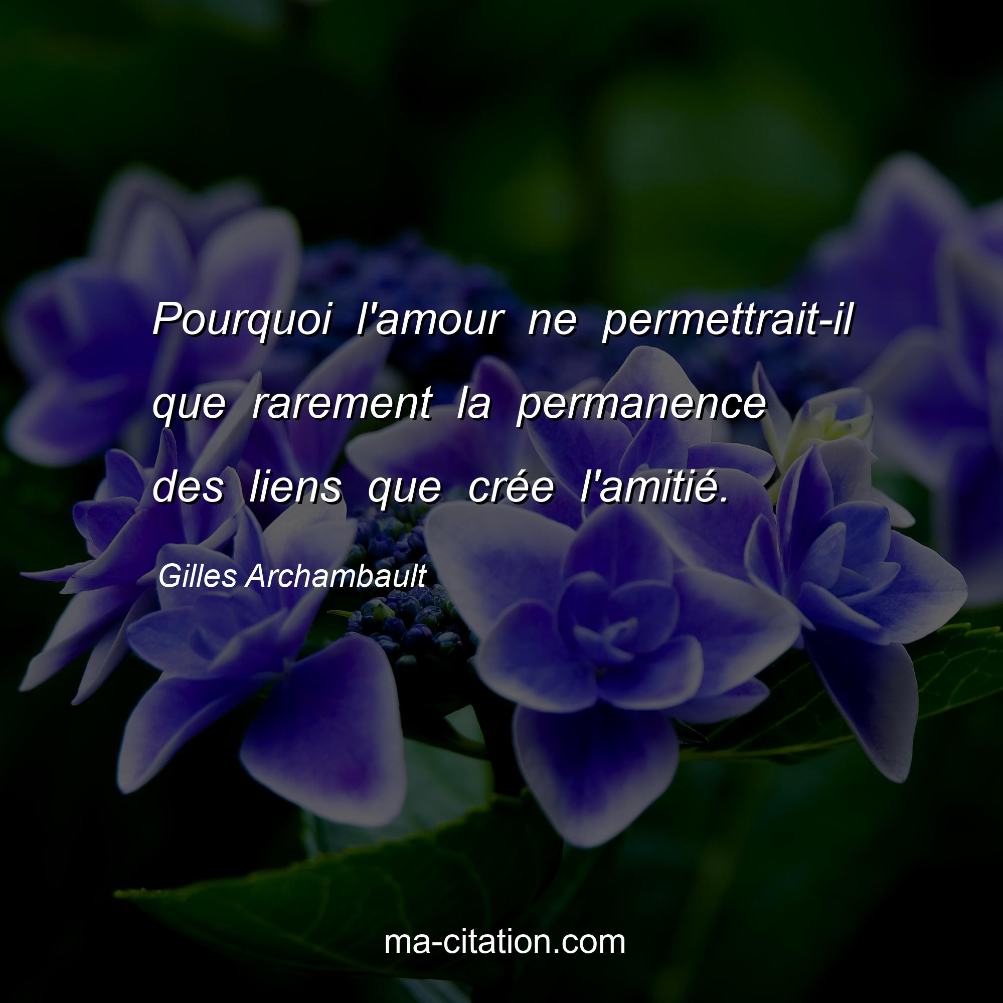 Gilles Archambault est l'auteur de la citation sur l'amitié "Pourquoi l'amour ne permettrait-il que rarement la permanence des liens que crée l'amitié.".