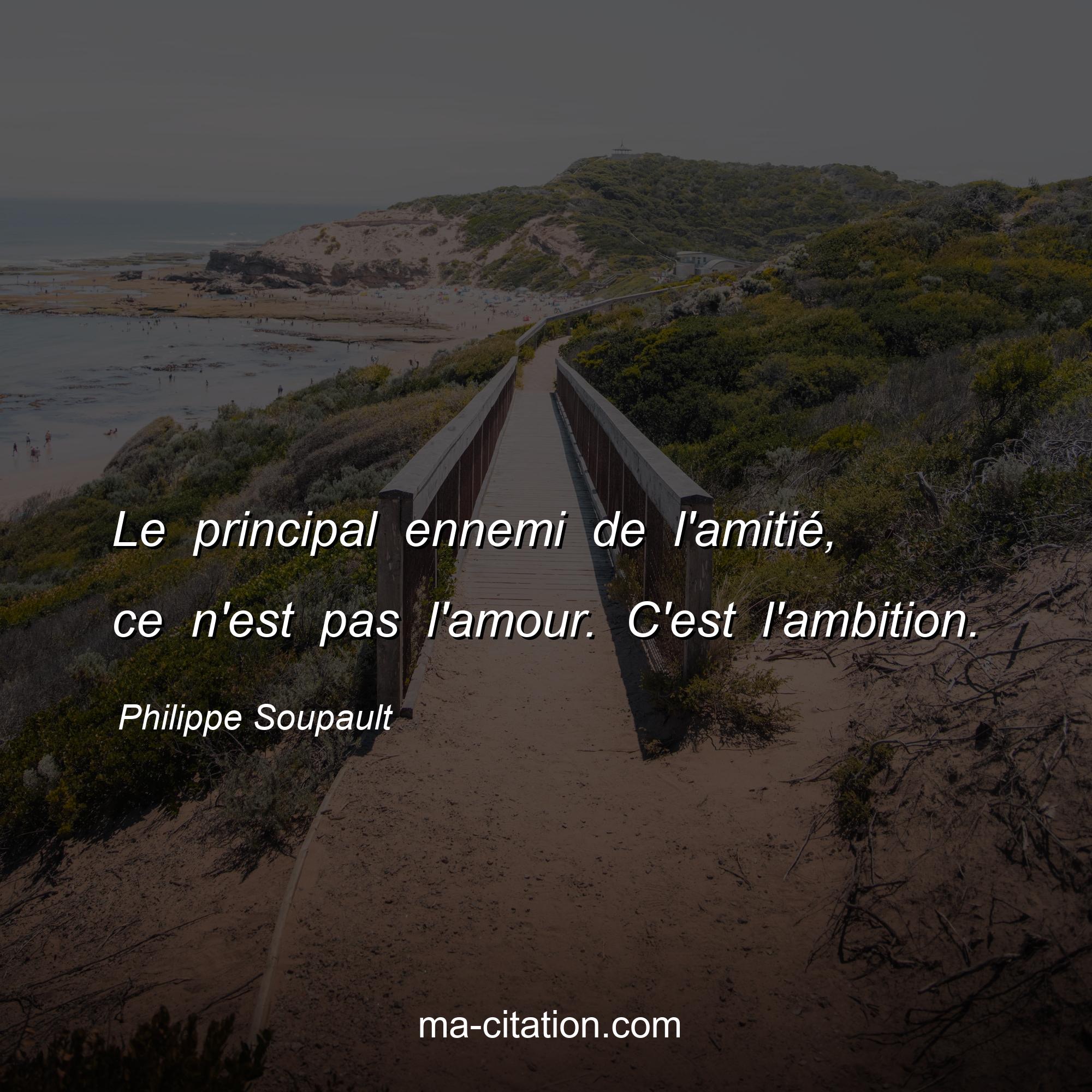 Citation sur l'amitié de Philippe Soupault :Le principal ennemi de l'amitié, ce n'est pas l'amour. C'est l'ambition.