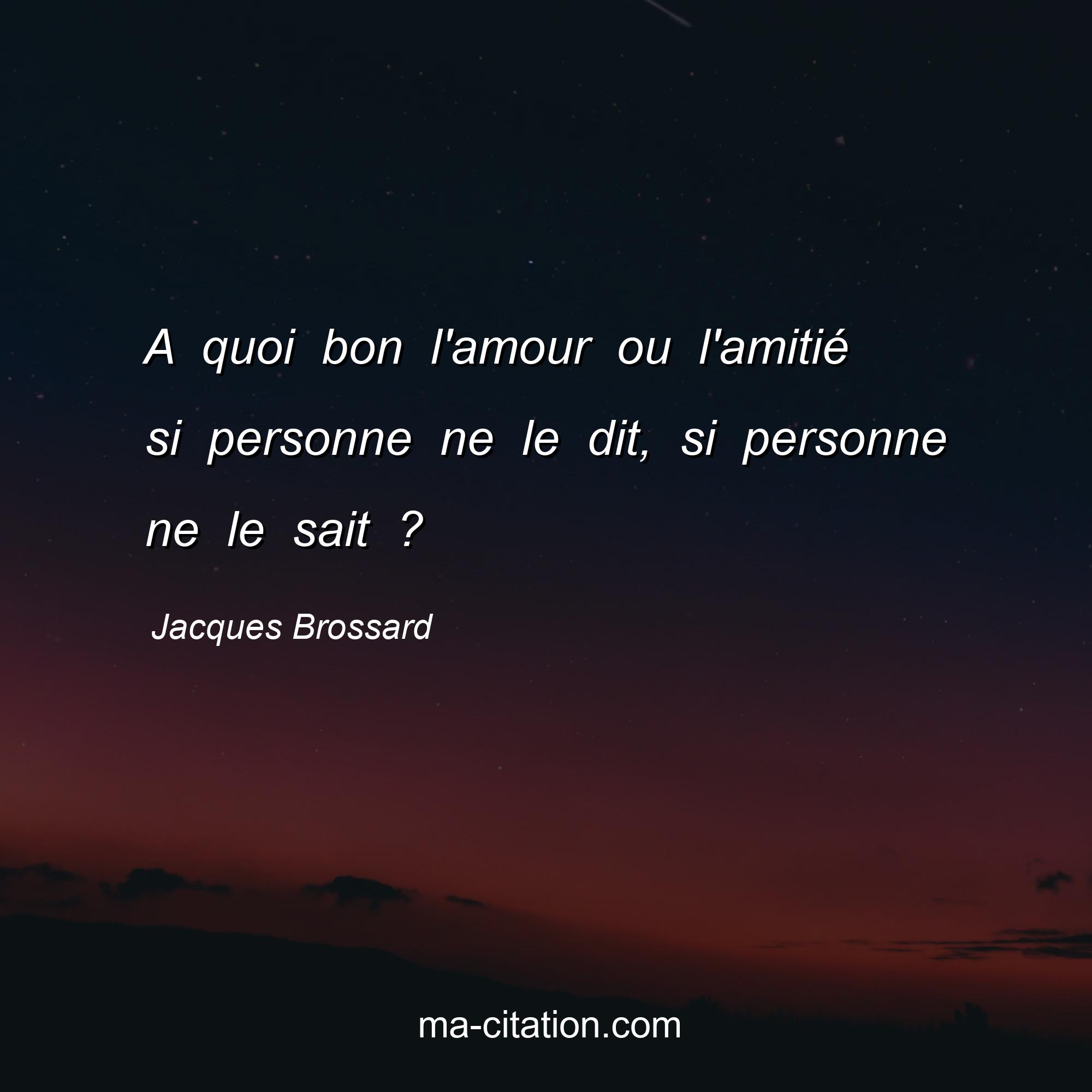 Jacques Brossard est l'auteur de la citation sur l'amitié "A quoi bon l'amour ou l'amitié si personne ne le dit, si personne ne le sait ?".