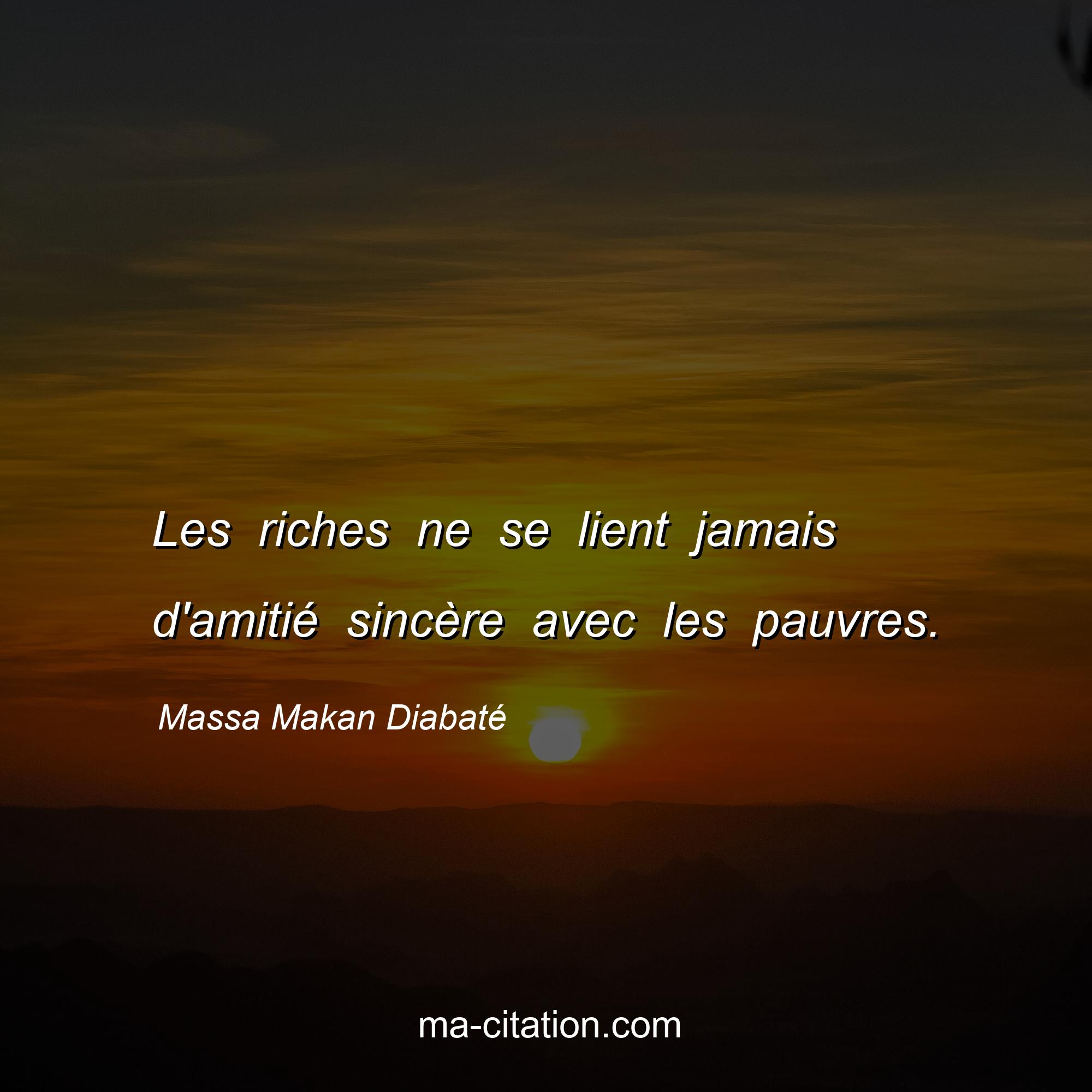 Citation sur l'amitié de Massa Makan Diabaté :Les riches ne se lient jamais d'amitié sincère avec les pauvres.