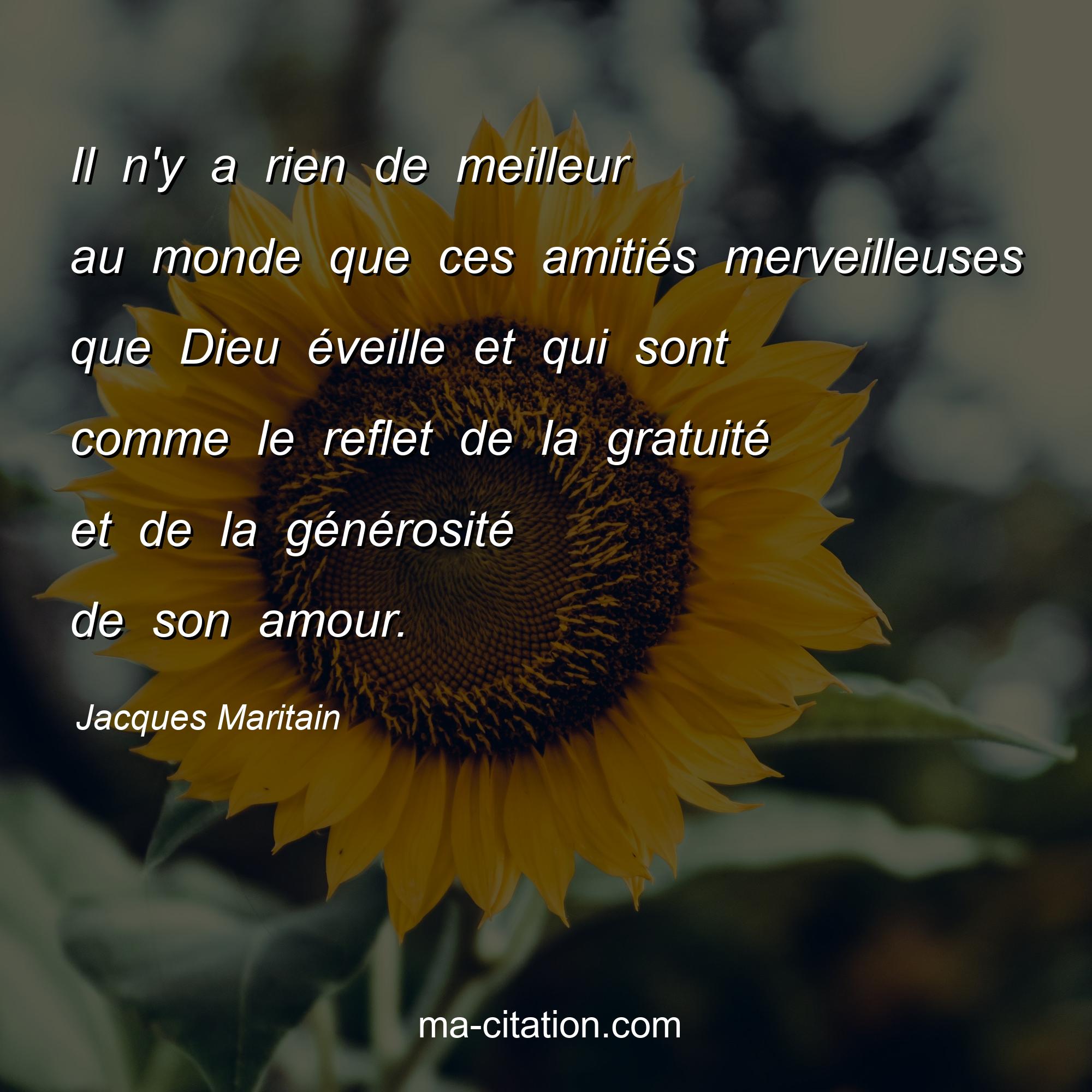 Jacques Maritain est l'auteur de la citation sur l'amitié "Il n'y a rien de meilleur au monde que ces amitiés merveilleuses que Dieu éveille et qui sont comme le reflet de la gratuité et de la générosité de son amour.".