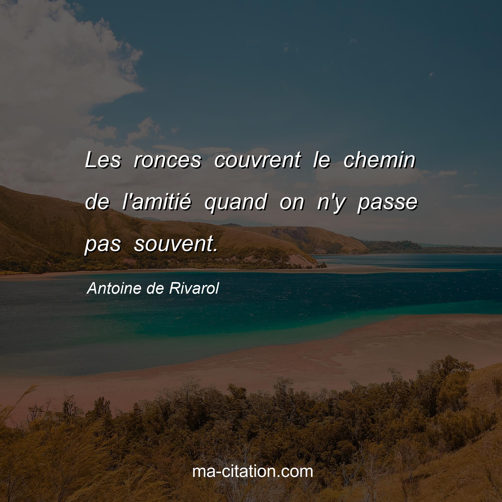 Citation sur l'amitié d'Antoine de Rivarol :Les ronces couvrent le chemin de l'amitié quand on n'y passe pas souvent.