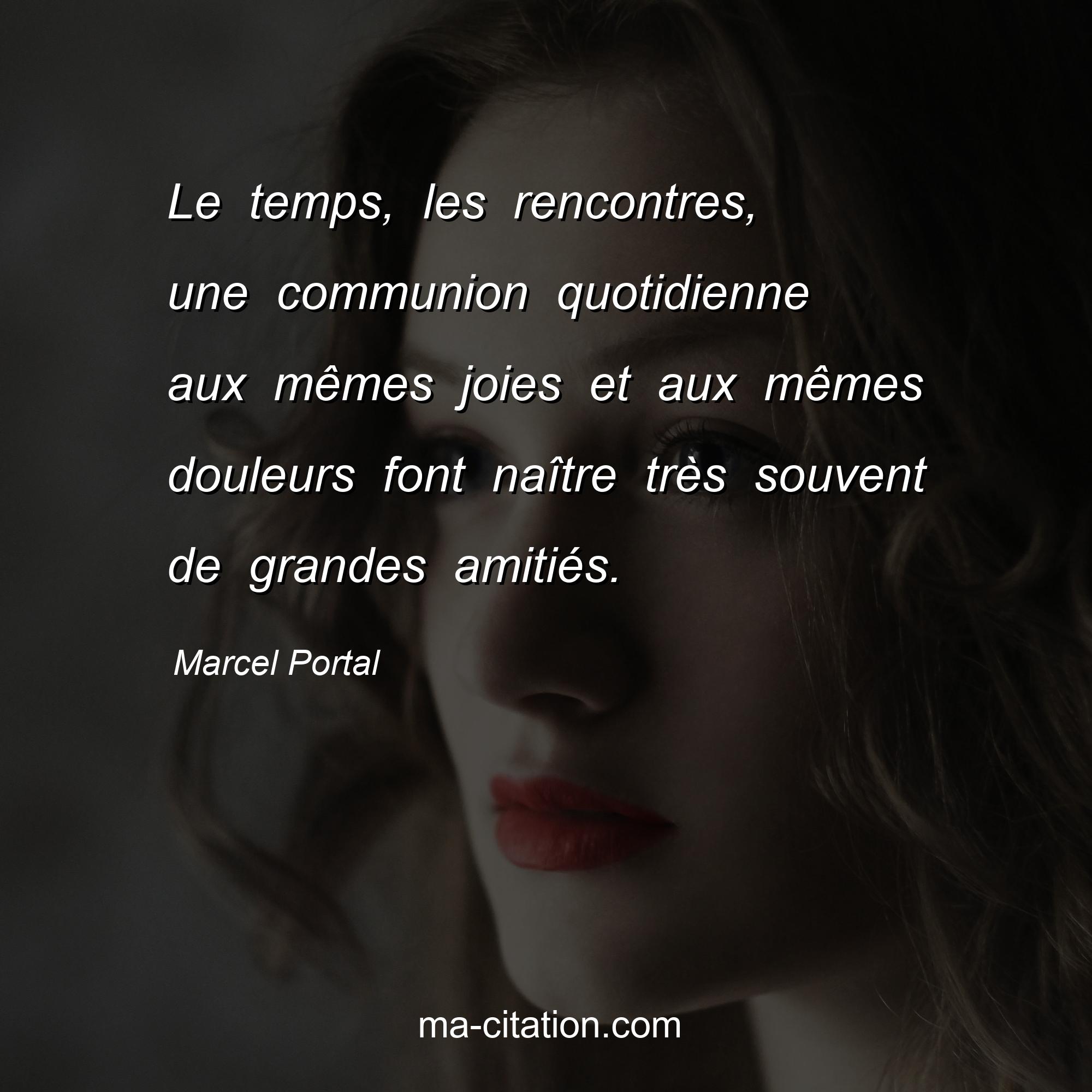 Marcel Portal est l'auteur de la citation sur l'amitié "Le temps, les rencontres, une communion quotidienne aux mêmes joies et aux mêmes douleurs font naître très souvent de grandes amitiés.".