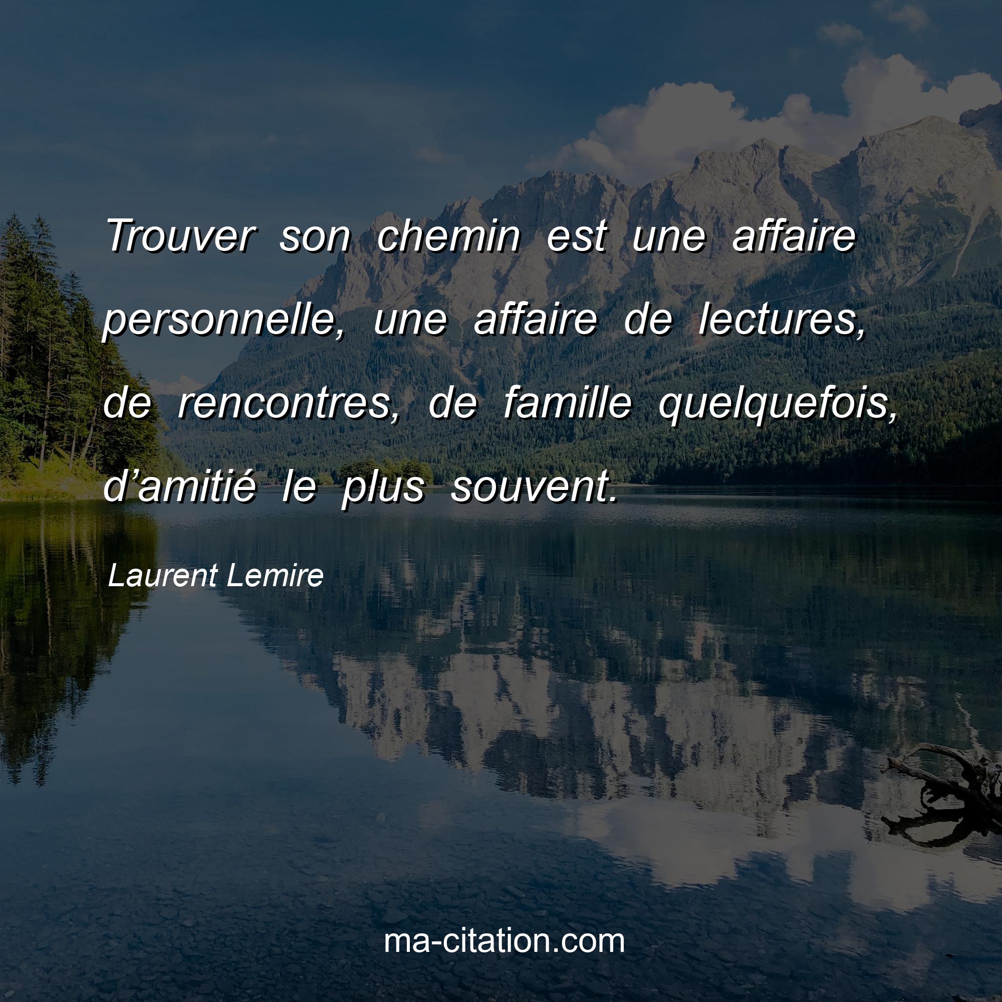 Laurent Lemire est l'auteur de la citation sur l'amitié "Trouver son chemin est une affaire personnelle, une affaire de lectures, de rencontres, de famille quelquefois, d’amitié le plus souvent.".