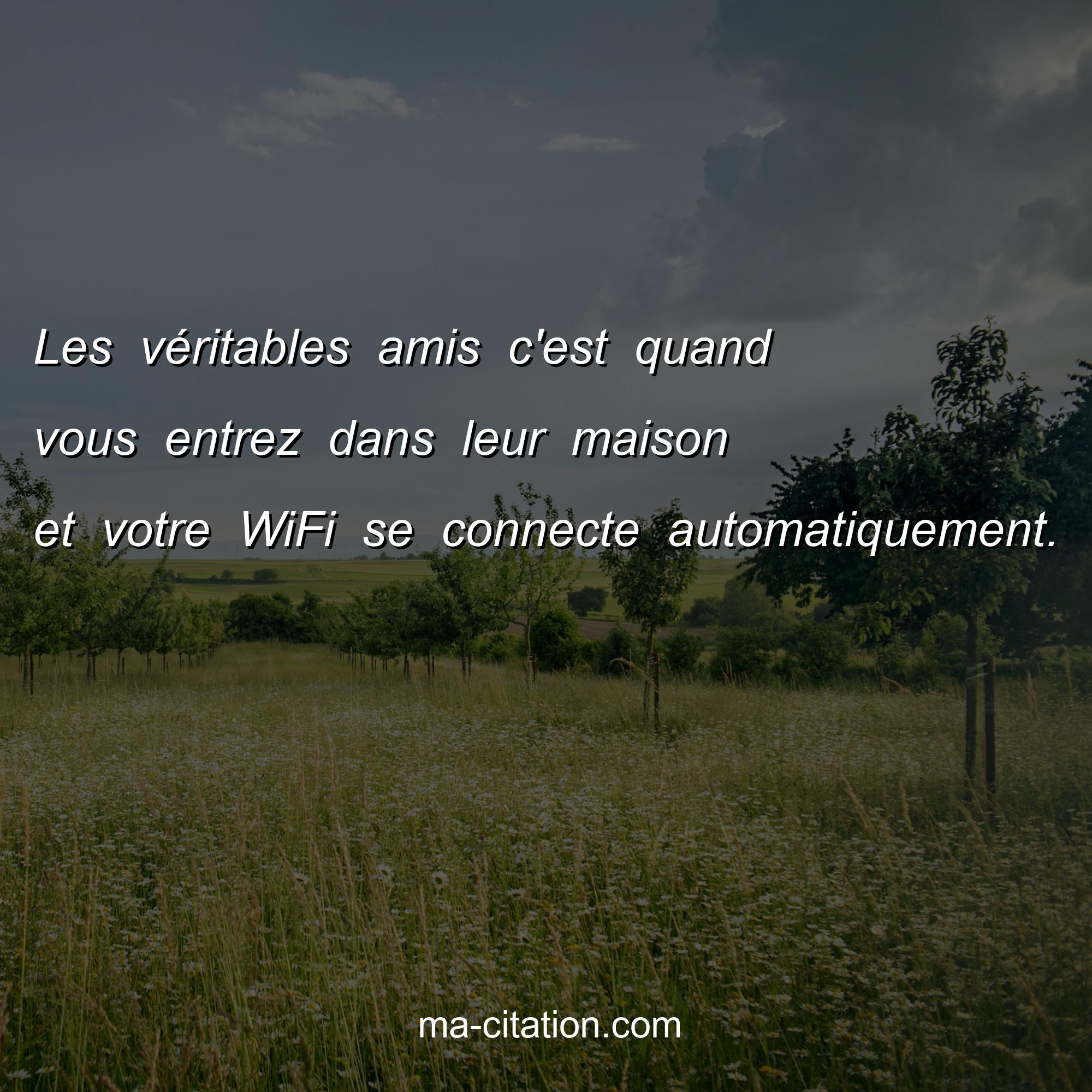 Citation sur l'amitié :Les véritables amis c'est quand vous entrez dans leur maison et votre WiFi se connecte automatiquement.