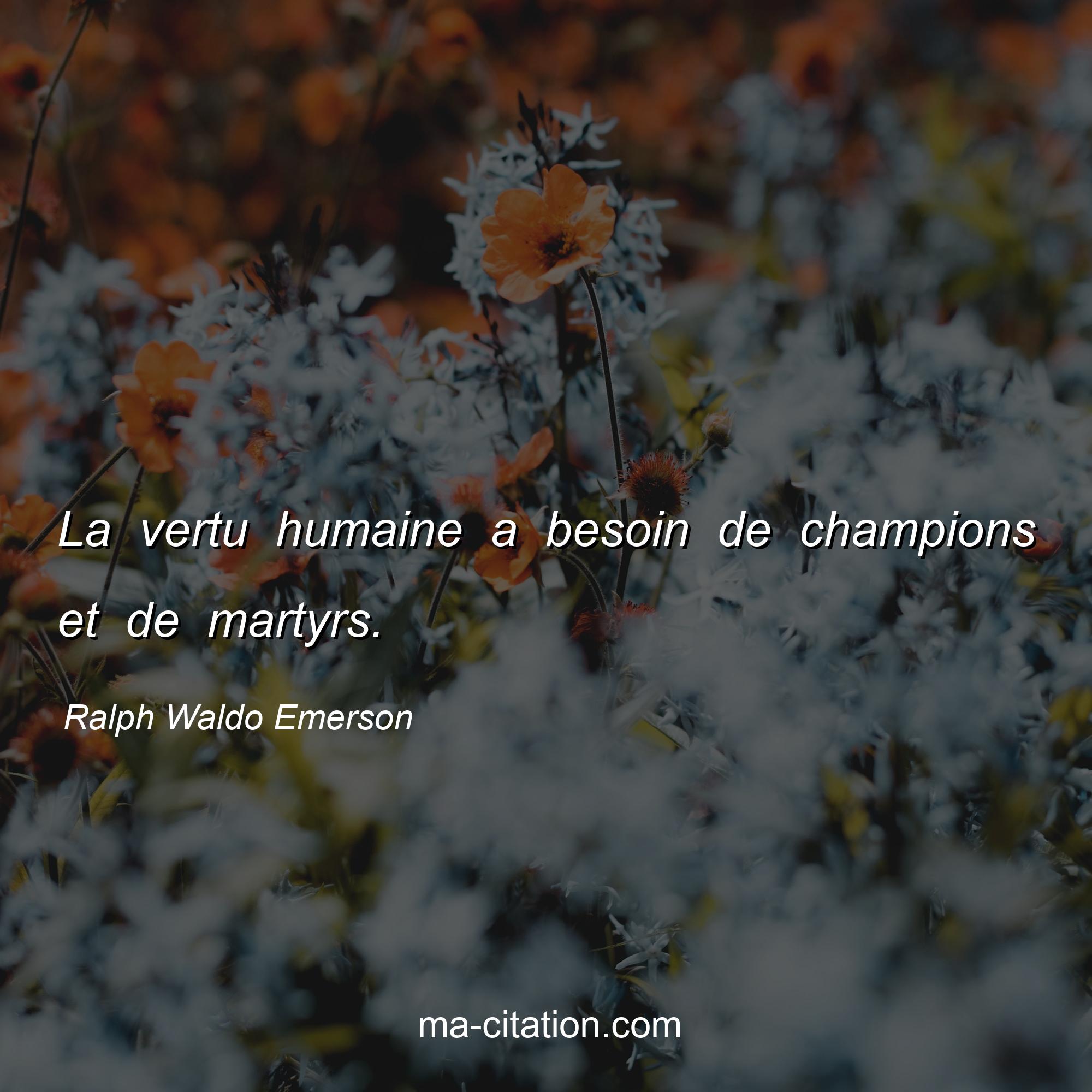 Citation sur l'amitié de Ralph Waldo Emerson :La vertu humaine a besoin de champions et de martyrs.