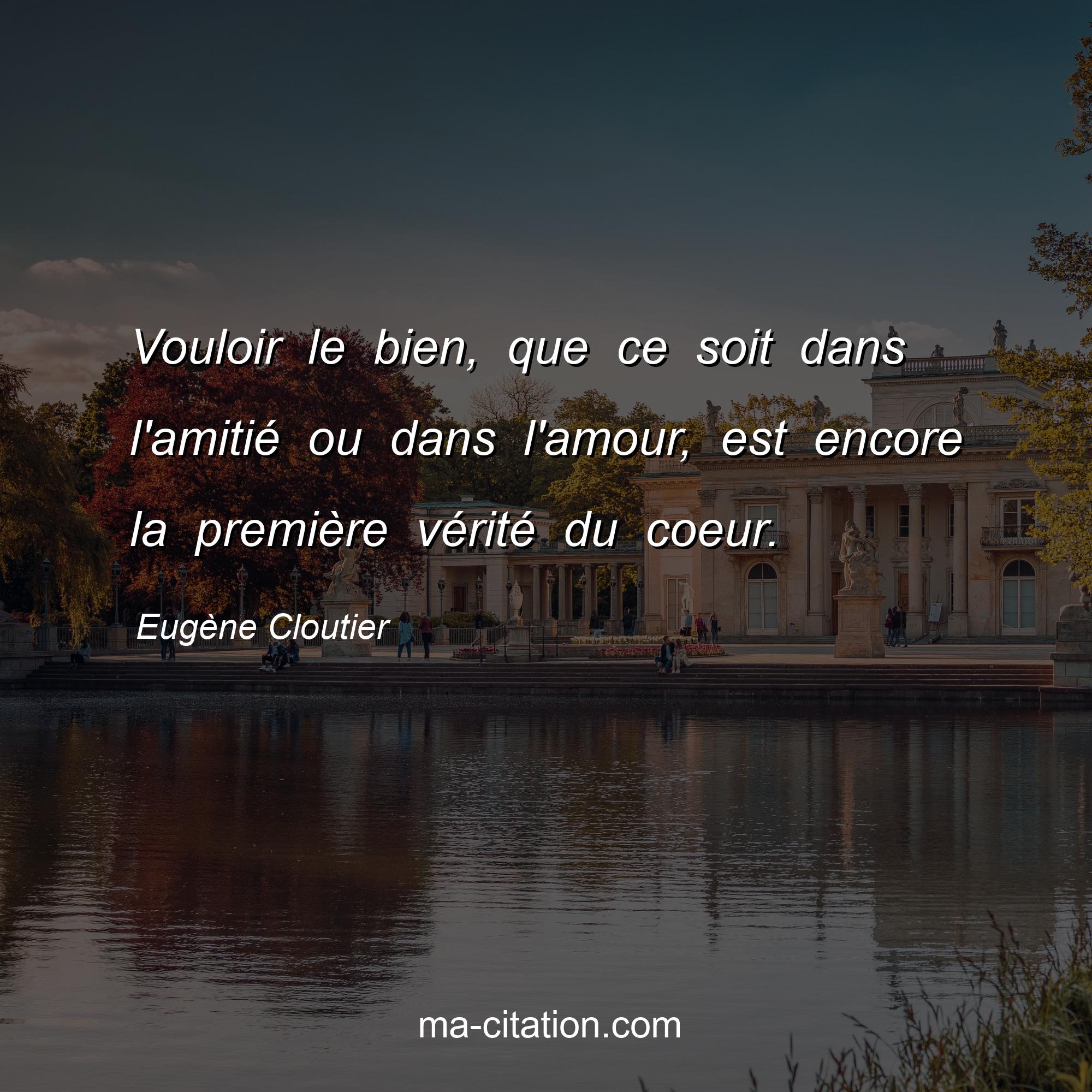 Citation sur l'amitié d'Eugène Cloutier :Vouloir le bien, que ce soit dans l'amitié ou dans l'amour, est encore la première vérité du coeur.